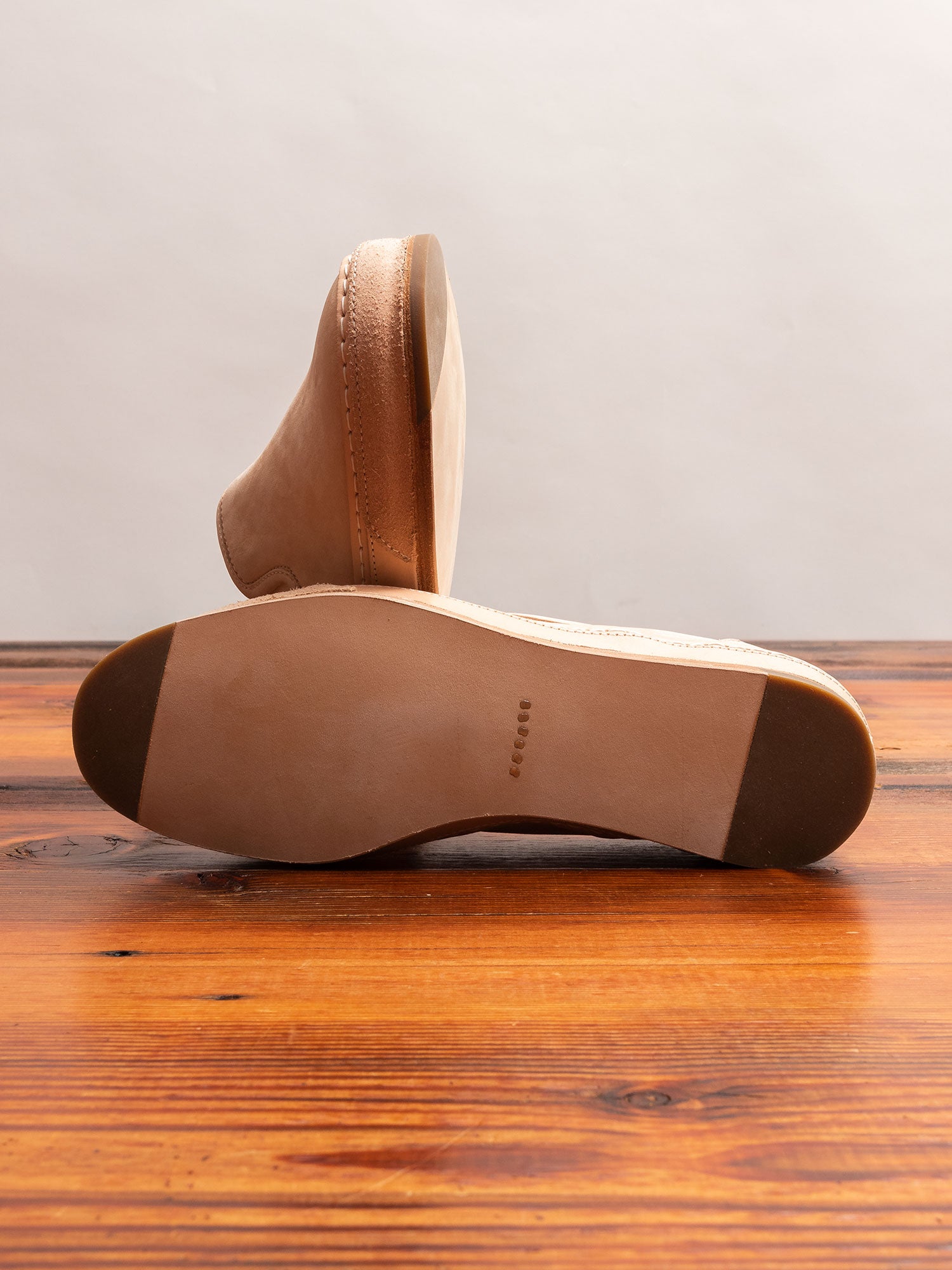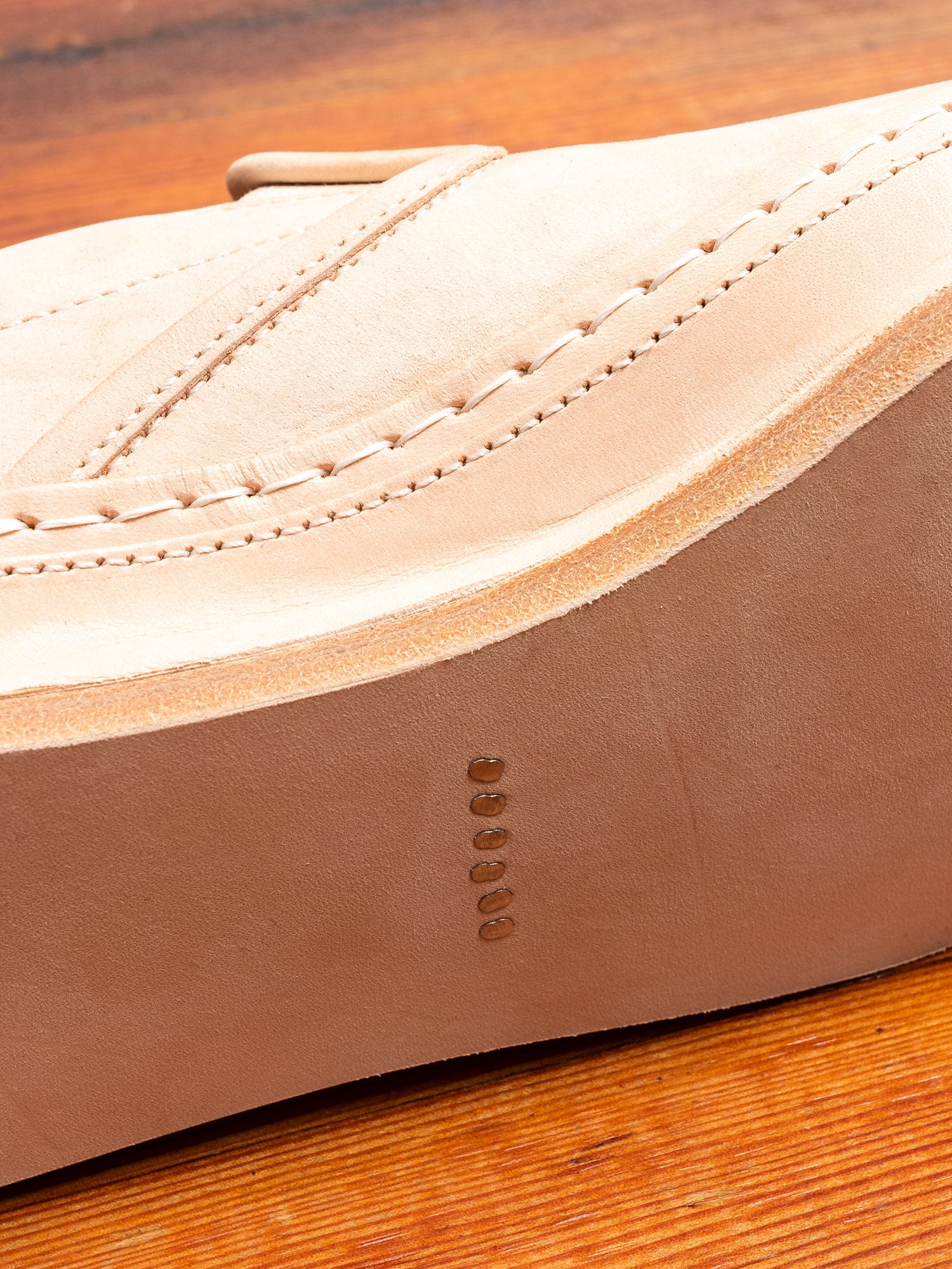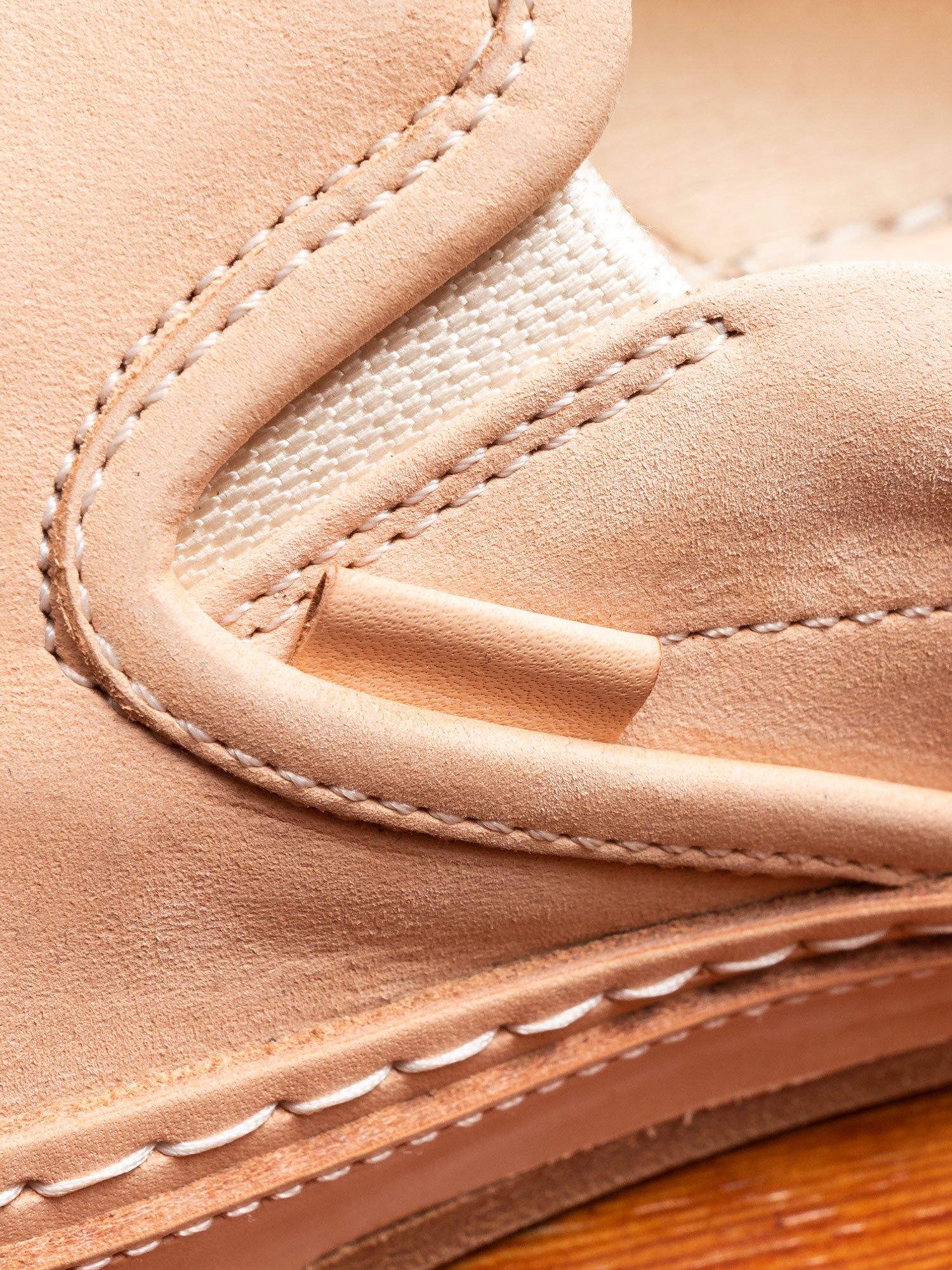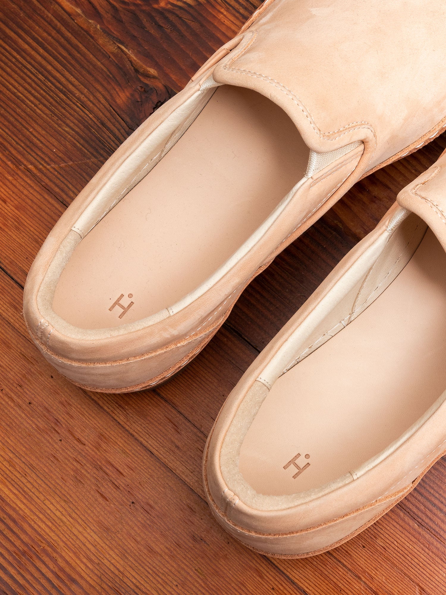 • Hender Scheme's coveted Manual Industrial Products line reimagines iconic footwear silhouettes in vegetable-tanned leather. Manual Industrial Products 17 pulls inspiration from one of the most iconic classic sneakers. Handcrafted in Japan, the easy slip-on is constructed entirely out of leather with a nubuck upper, cowhide sole, and various leather trims. The natural color of all leathers will age and patina with wear, resulting in a beautiful custom shoe.