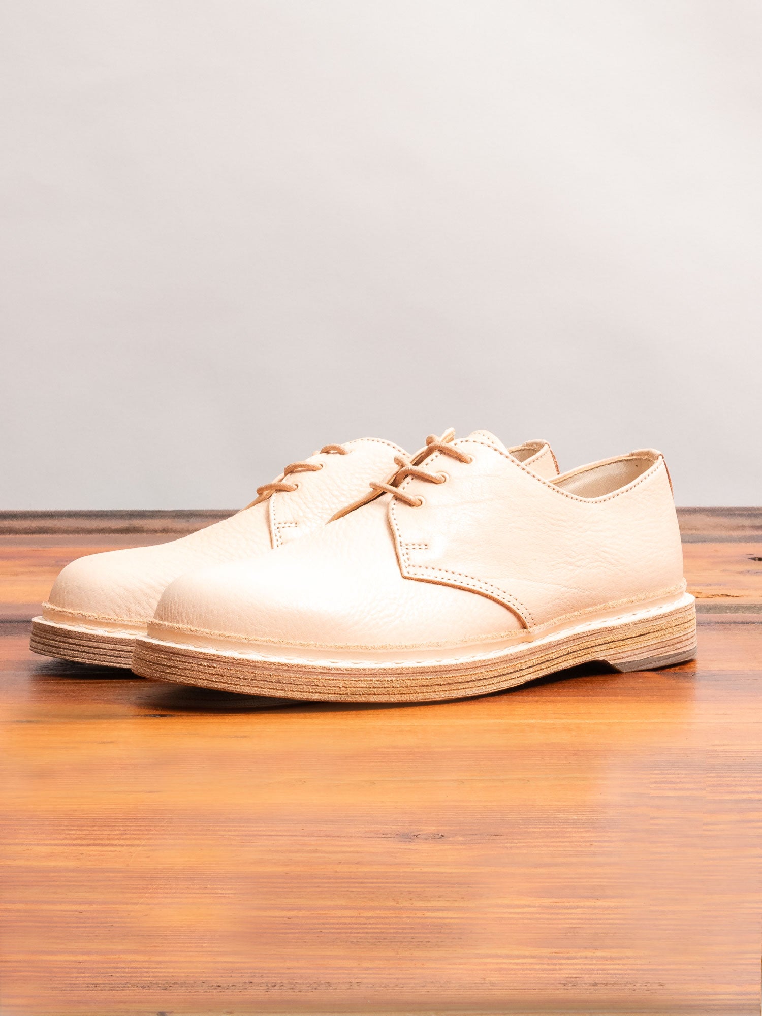 • Hender Scheme's coveted Manual Industrial Products line reimagines iconic footwear silhouettes in vegetable-tanned leather. Made in partnership with Dr. Martens, Manual Industrial Products 21 reimagines the English maker's original low-top shoe design, the iconic 1461 derby silhouette. Handcrafted in Japan, the shoe is detailed with natural pebbled leather panelling, and comes equipped with leather laces, leather lining, and a leather outsole completing the tonal design that will age with wear.