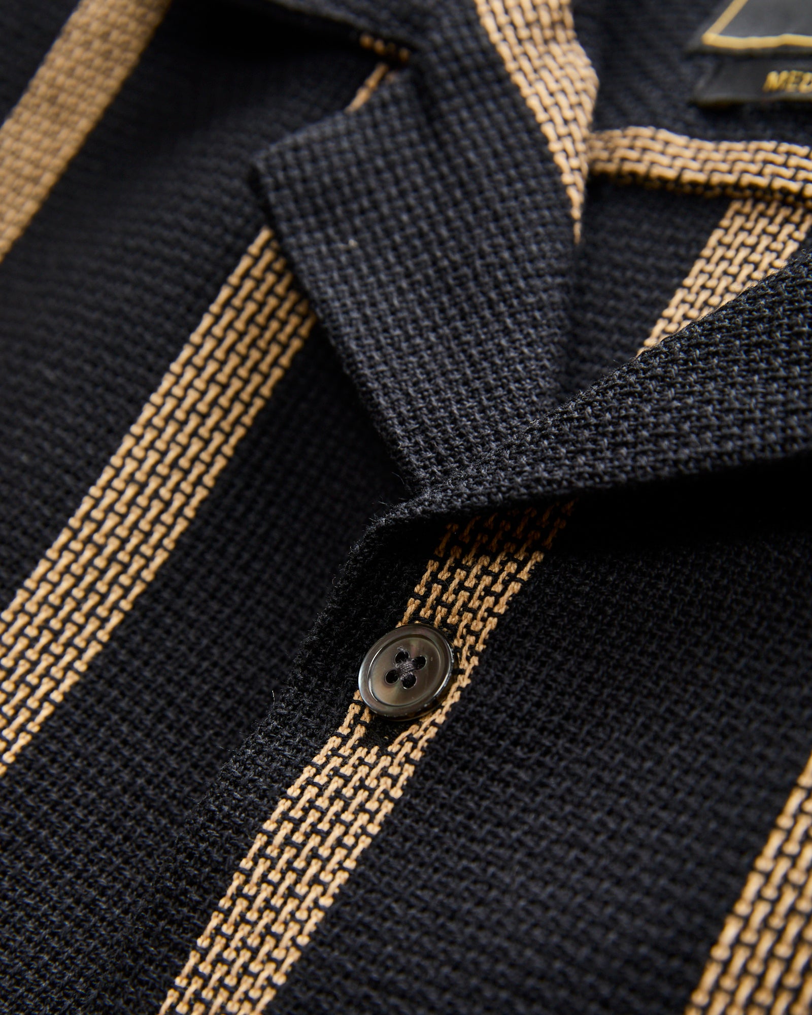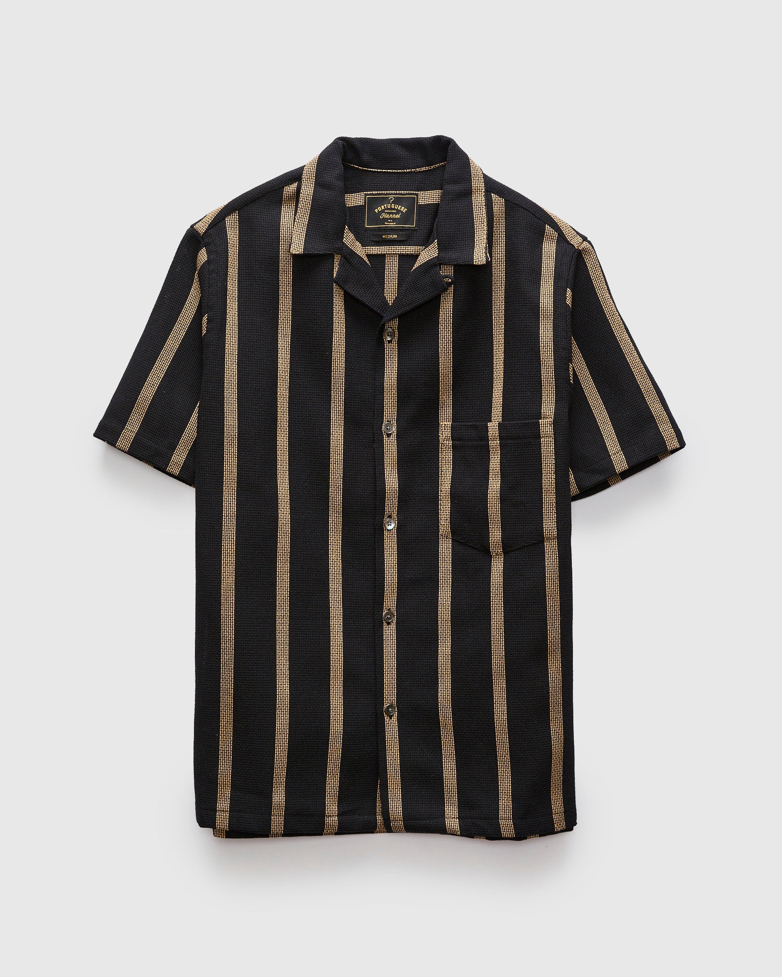 • The Marques shirt from Portuguese Flannel is an open-collar vacation shirt made using fabric from the brand's storied archive. Drawing from generations of textile expertise, the Marques is woven with a breathable weave and textured vertical striping. The shirt comes fitted with a single chest pocket and straight hem finish.