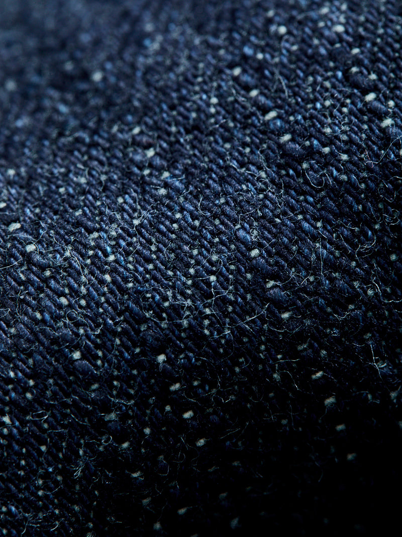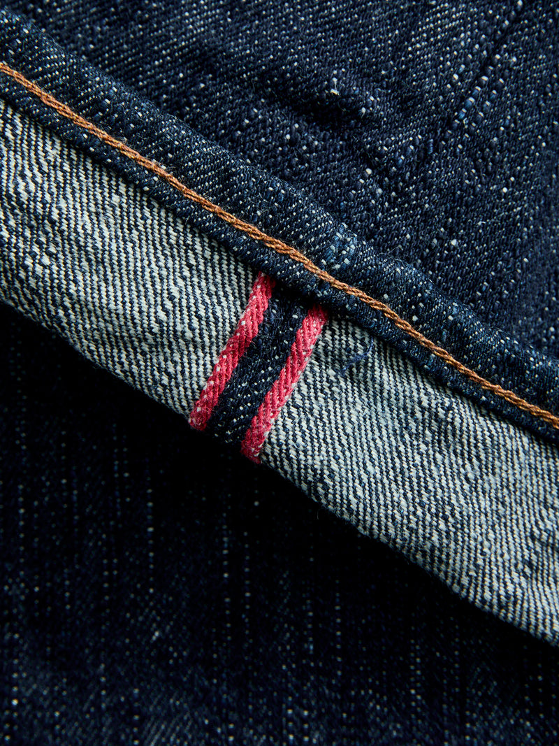 • The 12th installment of Naked & Famous' Made in Japan Series is built on a slubby 16oz selvedge denim, characterized by pronounced vertical streakiness and irregular, bumpy yarns which fade at different rates, adding depth and character to each pair. This limited release fabric makes use of a bottom dye technique to achieve a greencast color that fades in with wear.⁠ The jeans are treated using the a tempi wash process to naturally preshrink the denim via a cold water dip prior to being dried in the sun. The denim comes equipped with Made in Japan Series detailing, including iron buttons, copper rivets, and a Japanese sheepskin leather patch designed to darken with wear.