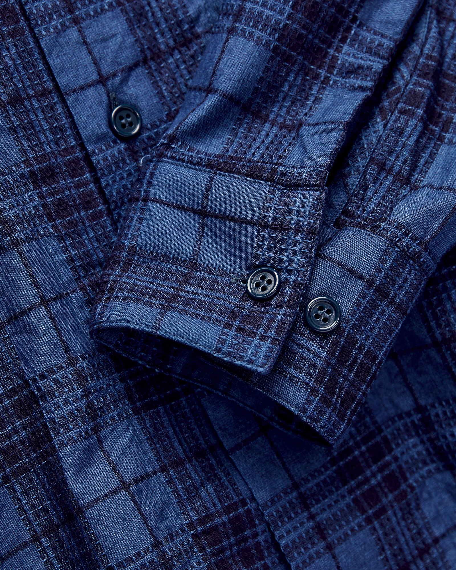 MIL Dobby Plaid Open Collar Shirt in Indigo