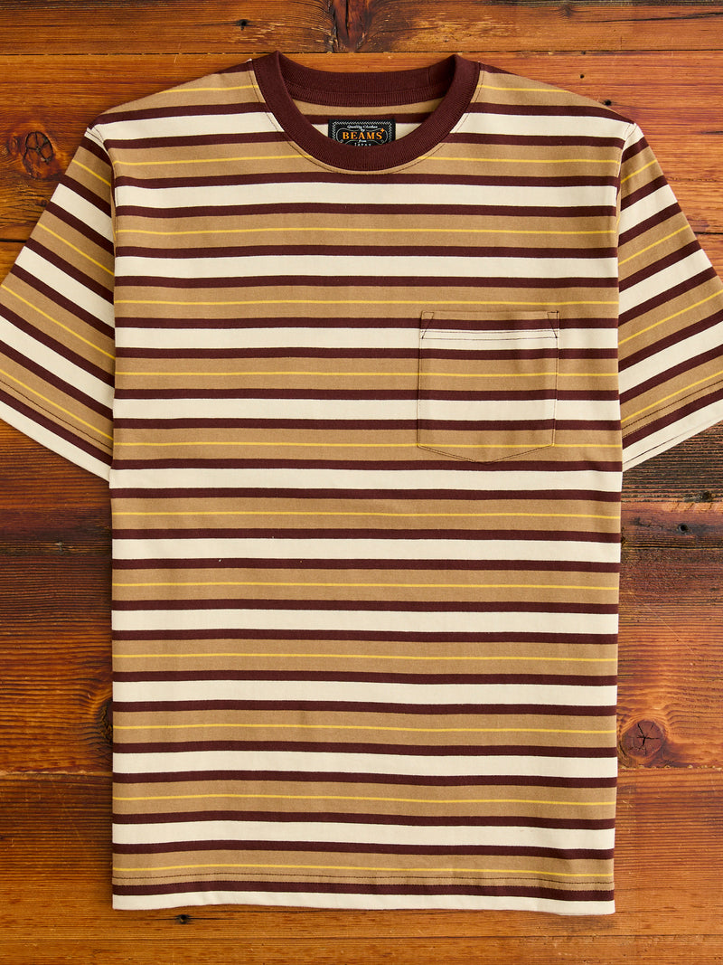 • The simple Pocket Tee from BEAMS PLUS is made from a medium-weight cotton fabric. This installment sports an intricate jacquard weave stripe design and comes fitted with a ribbed crewneck and patch pocket at the chest. Finished with set-in sleeves, a straight hem, and minimalist branding.