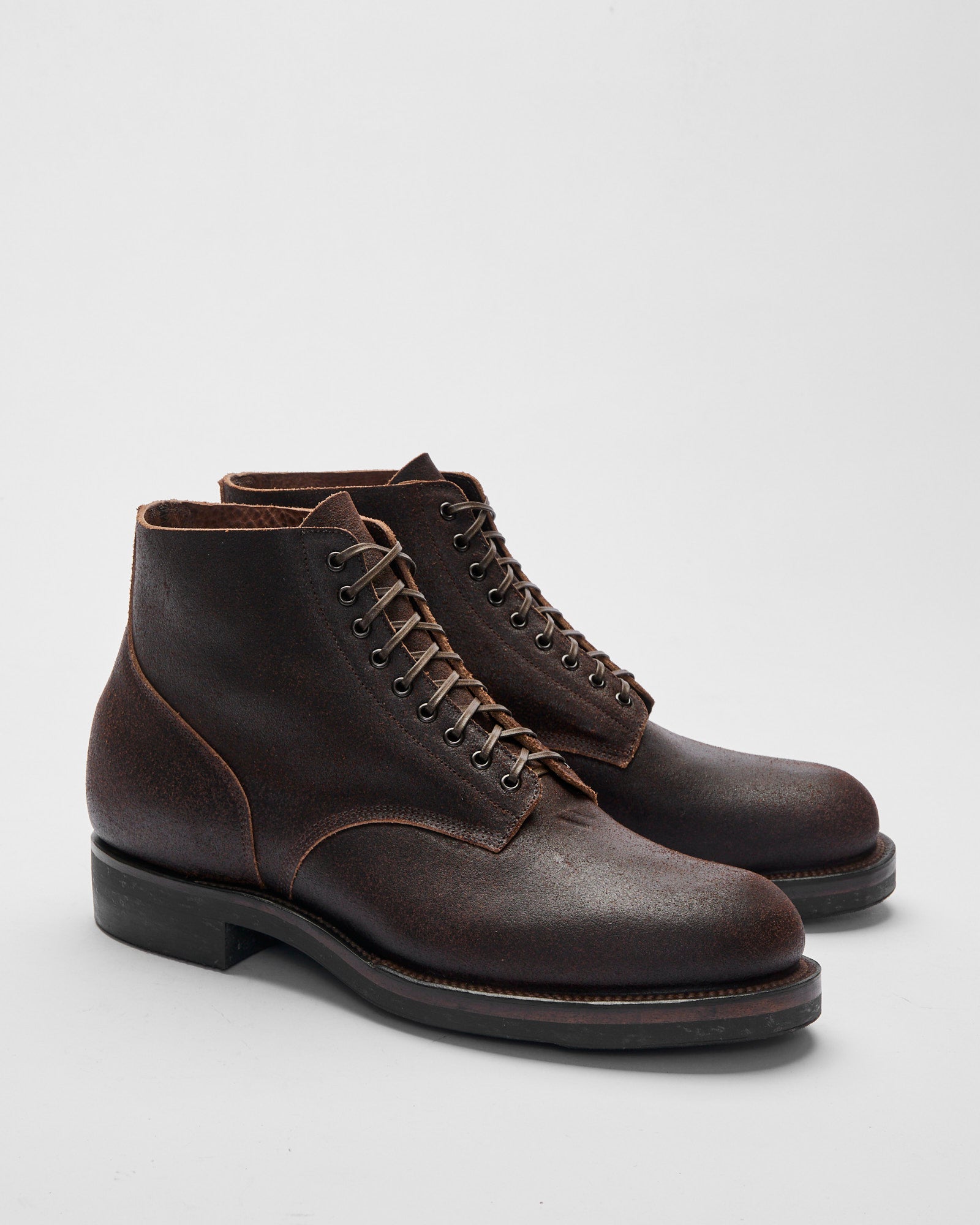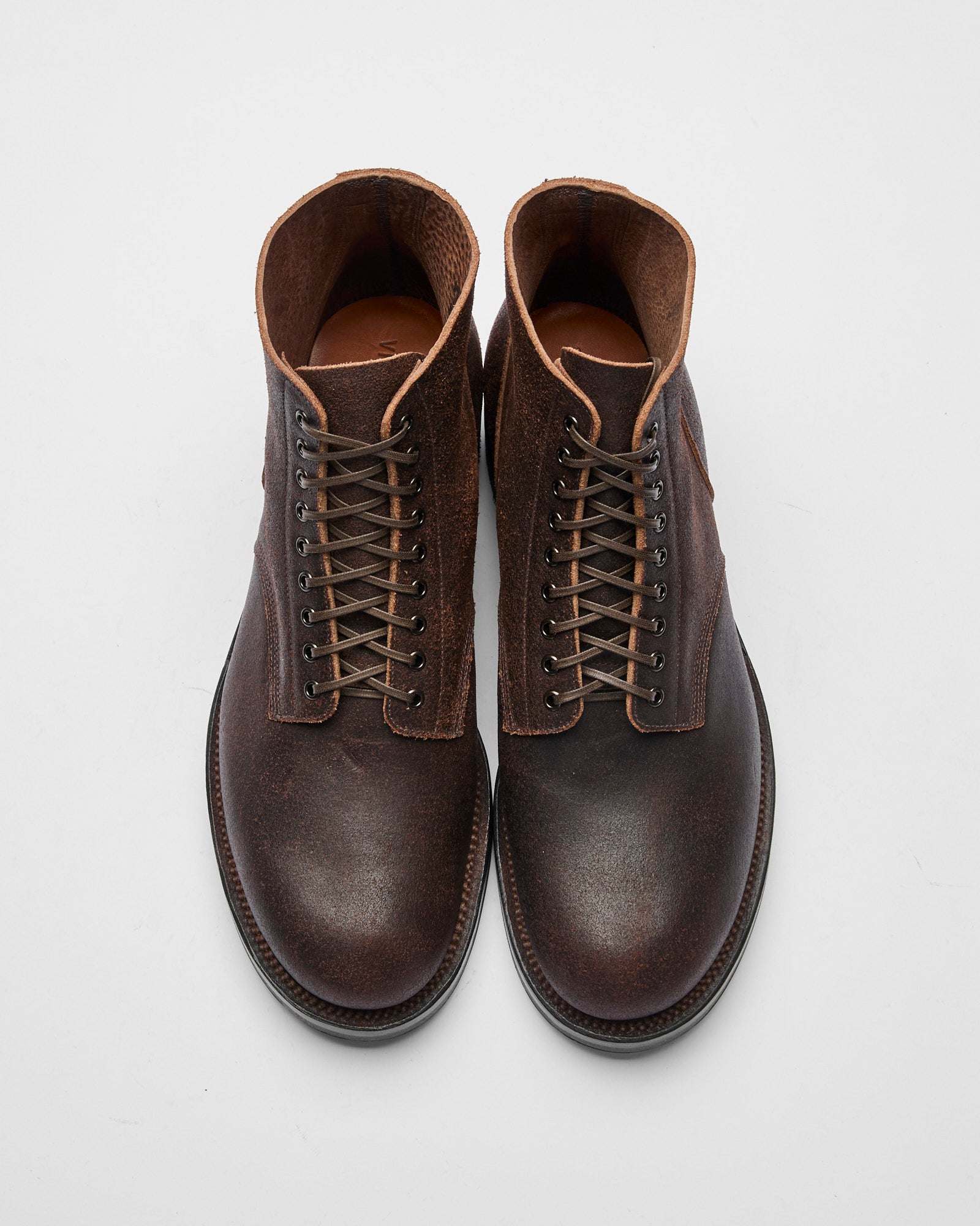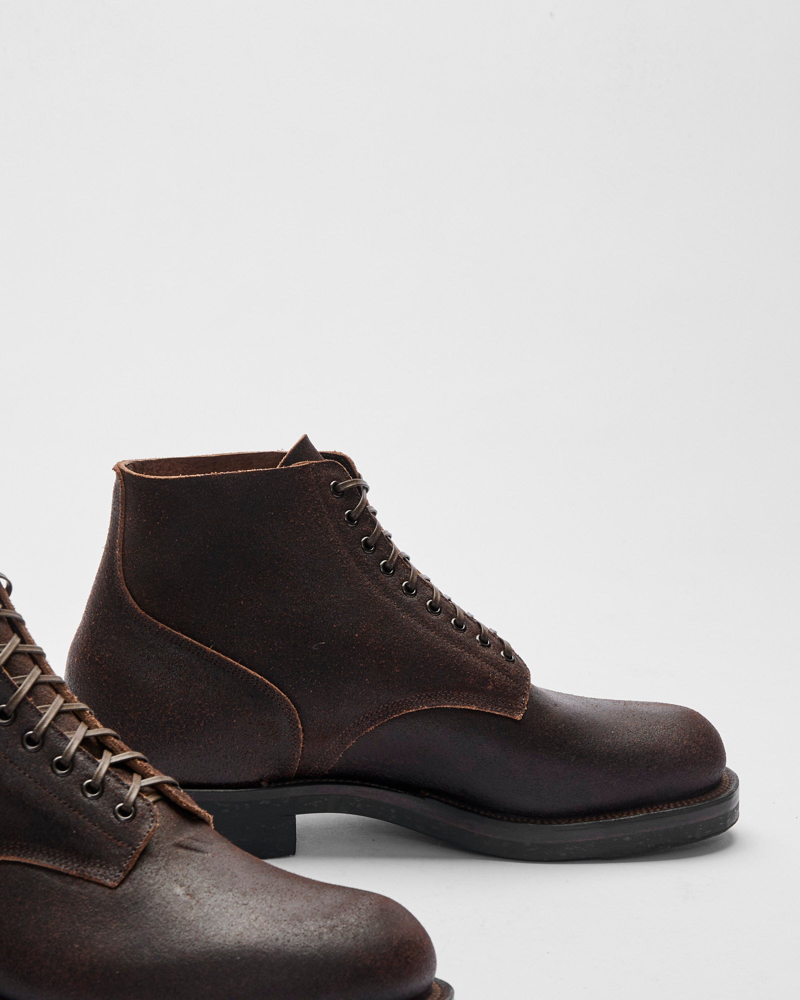 This release features Horween's Waxed Flesh leather finished with a wash treatment. Made from the flesh side of the leather, Horween begins with a Chromexcel base which is fully vegetable re-tanned, hot stuffed, and hand glazed for a textured-tight finish with a semi-gloss luster. Over time, the leather will rough up and show its nap in areas with high wear and scuffing. The boots are anchored by Viberg's signature stitchdown construction and finished with Dr. Sole Supergrip soles, a branded leather insole, and metal eyelets.