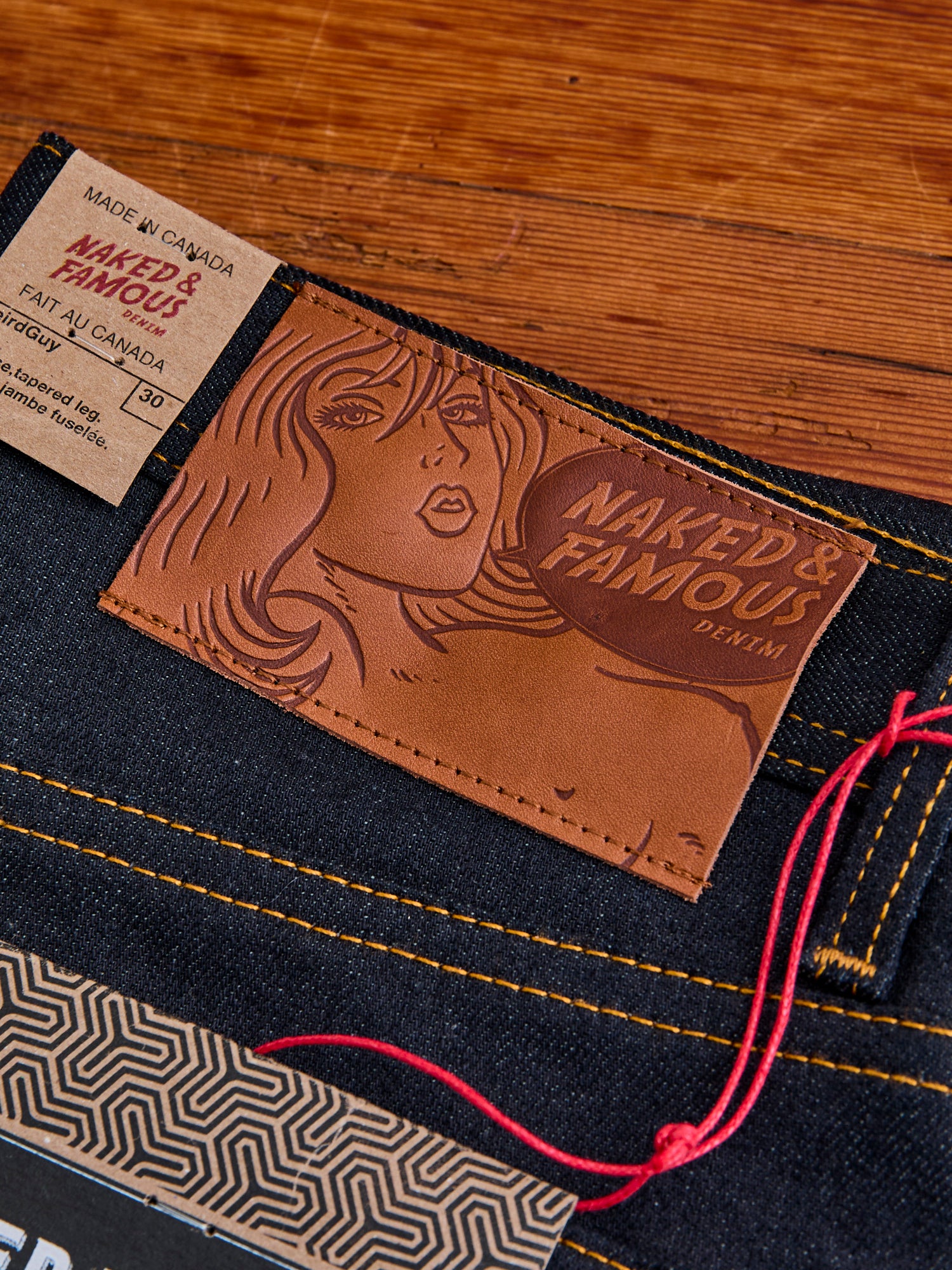 • The versatile Weird Guy fit from Naked & Famous features a medium rise and a moderate taper from the knee to the leg opening
