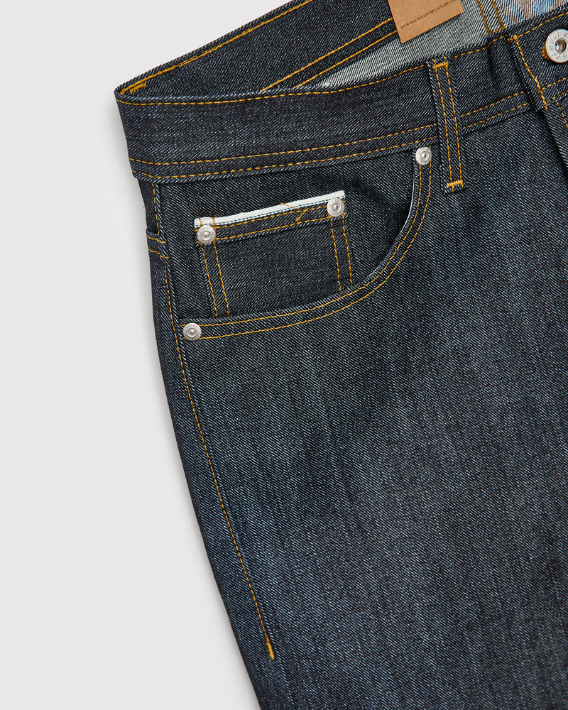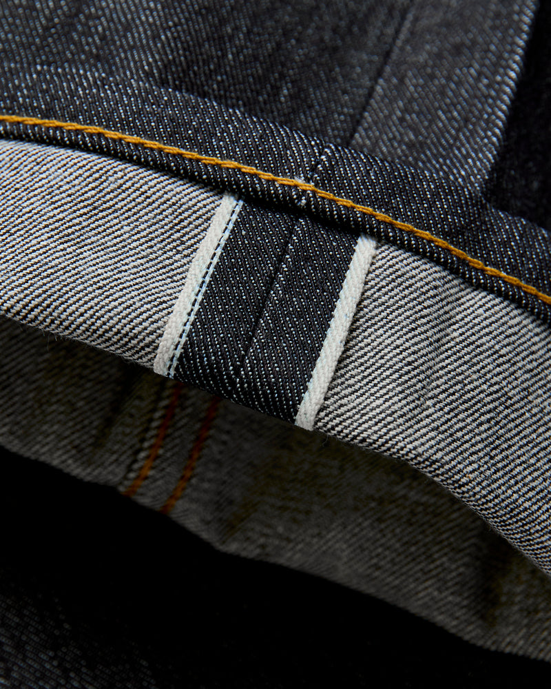 • 13.75oz sanforized selvedge denim woven on vintage shuttle looms in Japan