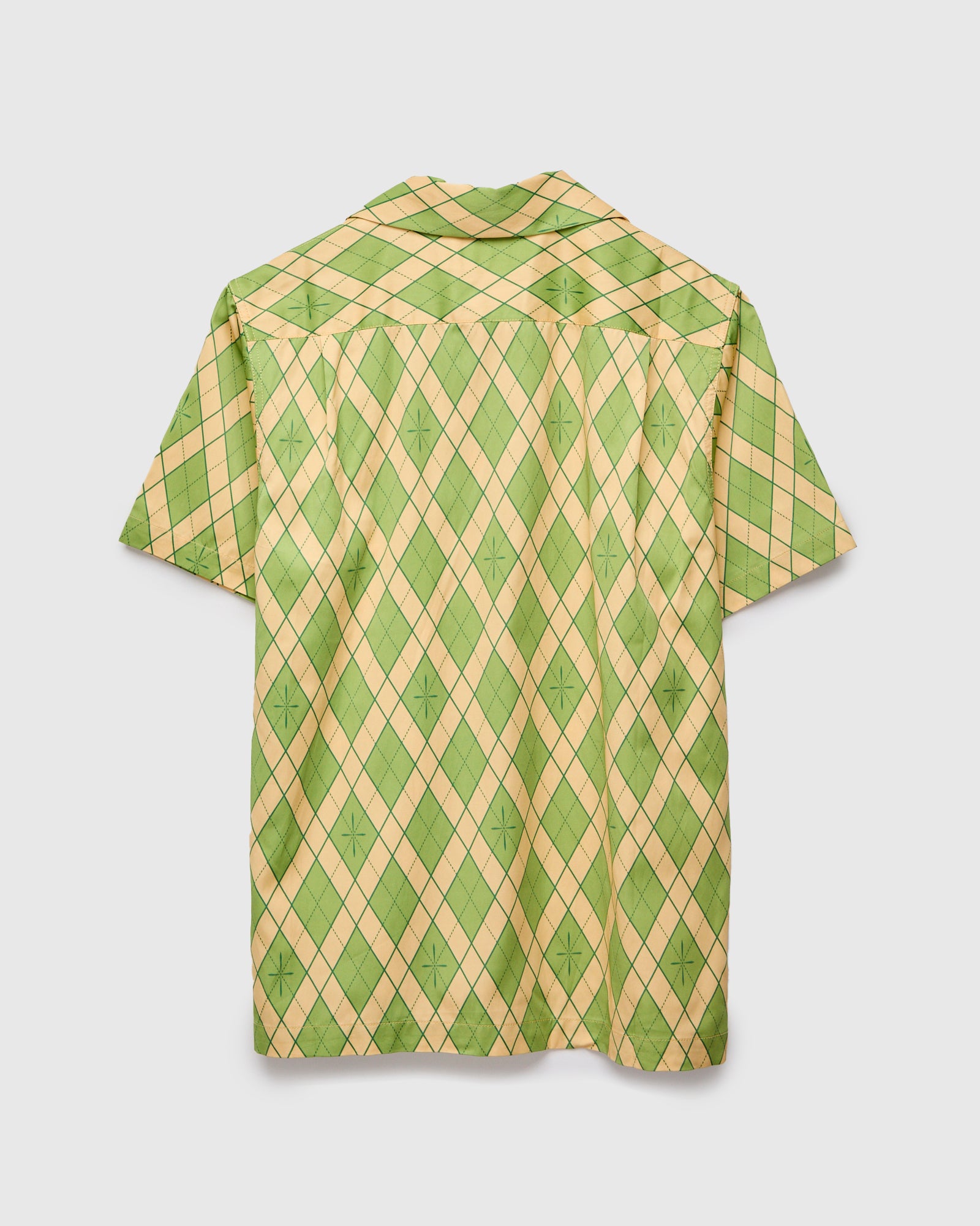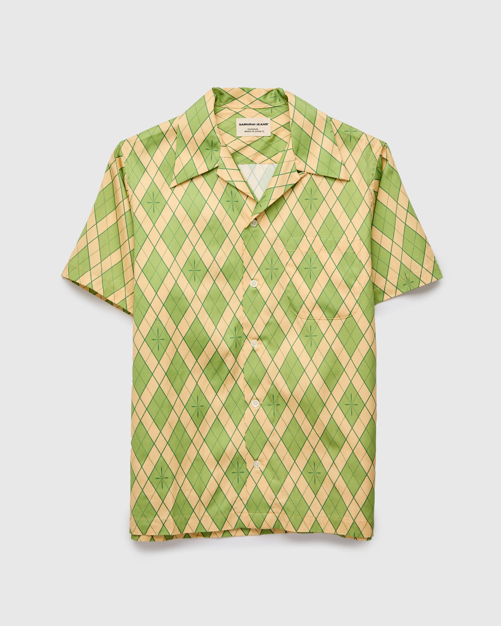 • Based on midcentury short sleeve shirts, this shirt features a traditional Japanese "narihirabishi" argyle pattern. Made with an open collar-straight hem design, the shirt features a classic design complete with a single chest pocket and reinforced button-down placket.