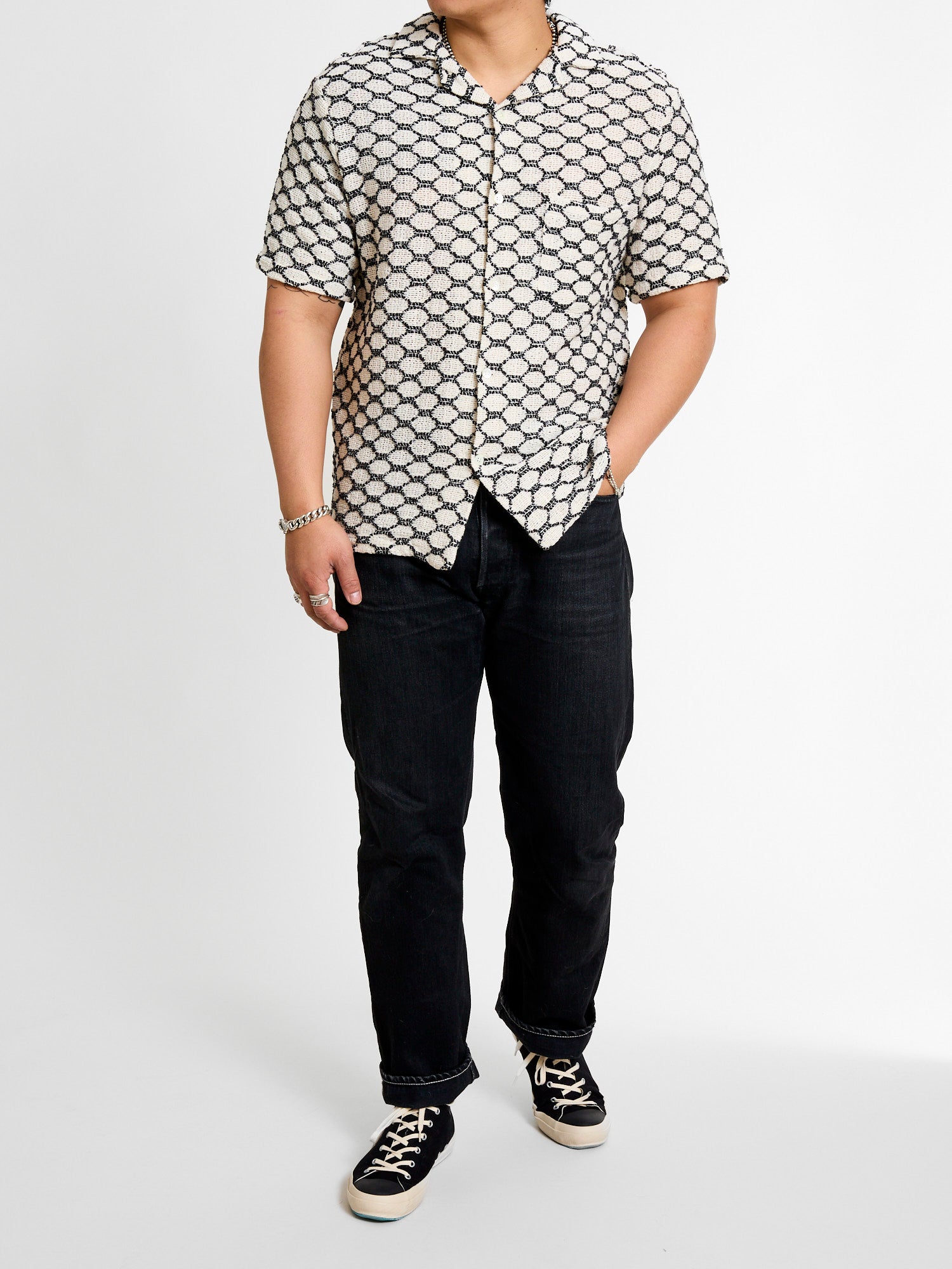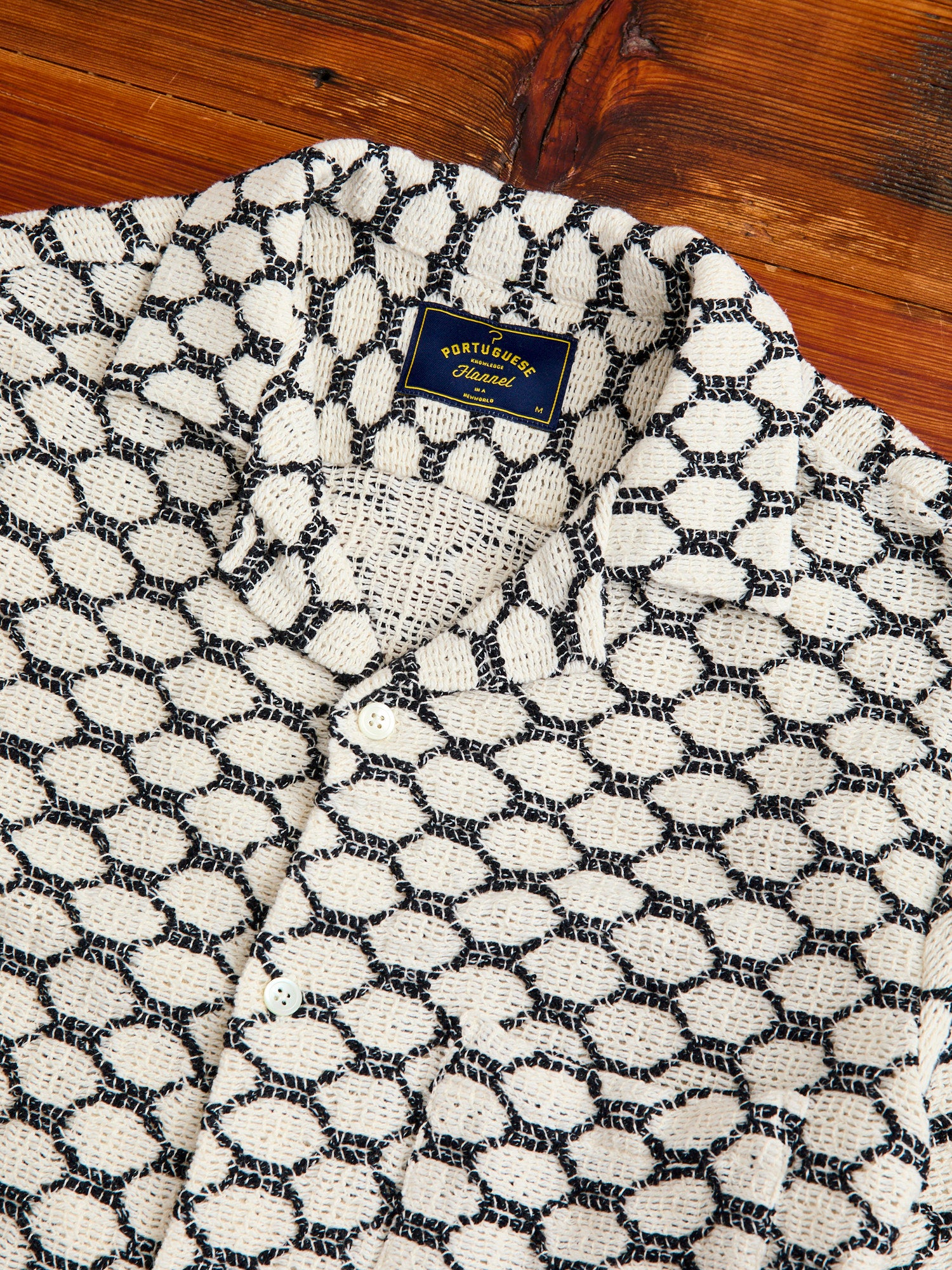 • This button-up shirt from Portuguese Flannel is a timeless shirt made using fabric from the brand's storied archive. The Net shirt is comprised of a lightweight cotton blend knit fabric that provides ample breathability in warm weather. Tailored in a regular fit and equipped with a single chest pocket.