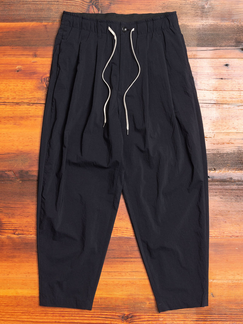 • The Sarouel Pants are a relaxed style from Kazuyuki Kumagai. Constructed from a washed featherweight nylon, the breezy pants are cut in an exaggerated relaxed tapered fit for a highly comfortable and nonchalant silhouette. The pants come designed with an elastic waistband for versatility, and are finished with signature ATTACHMENT details and styling.