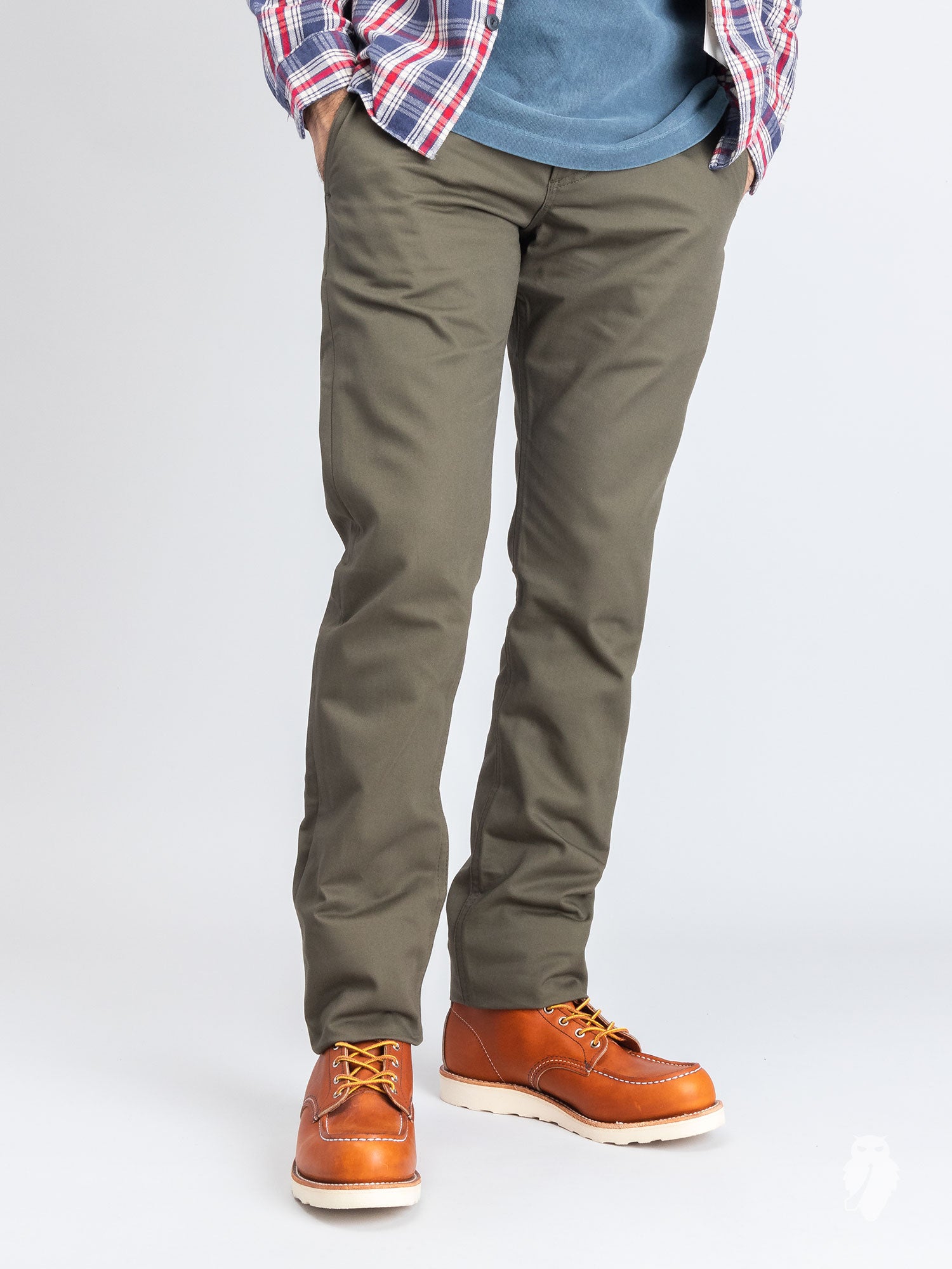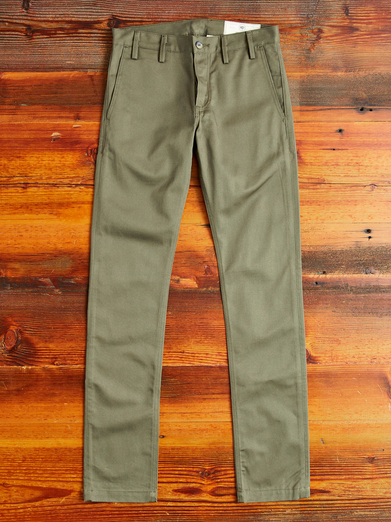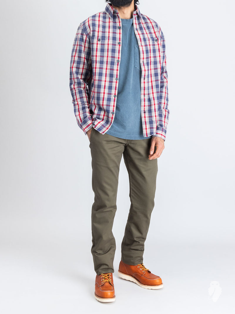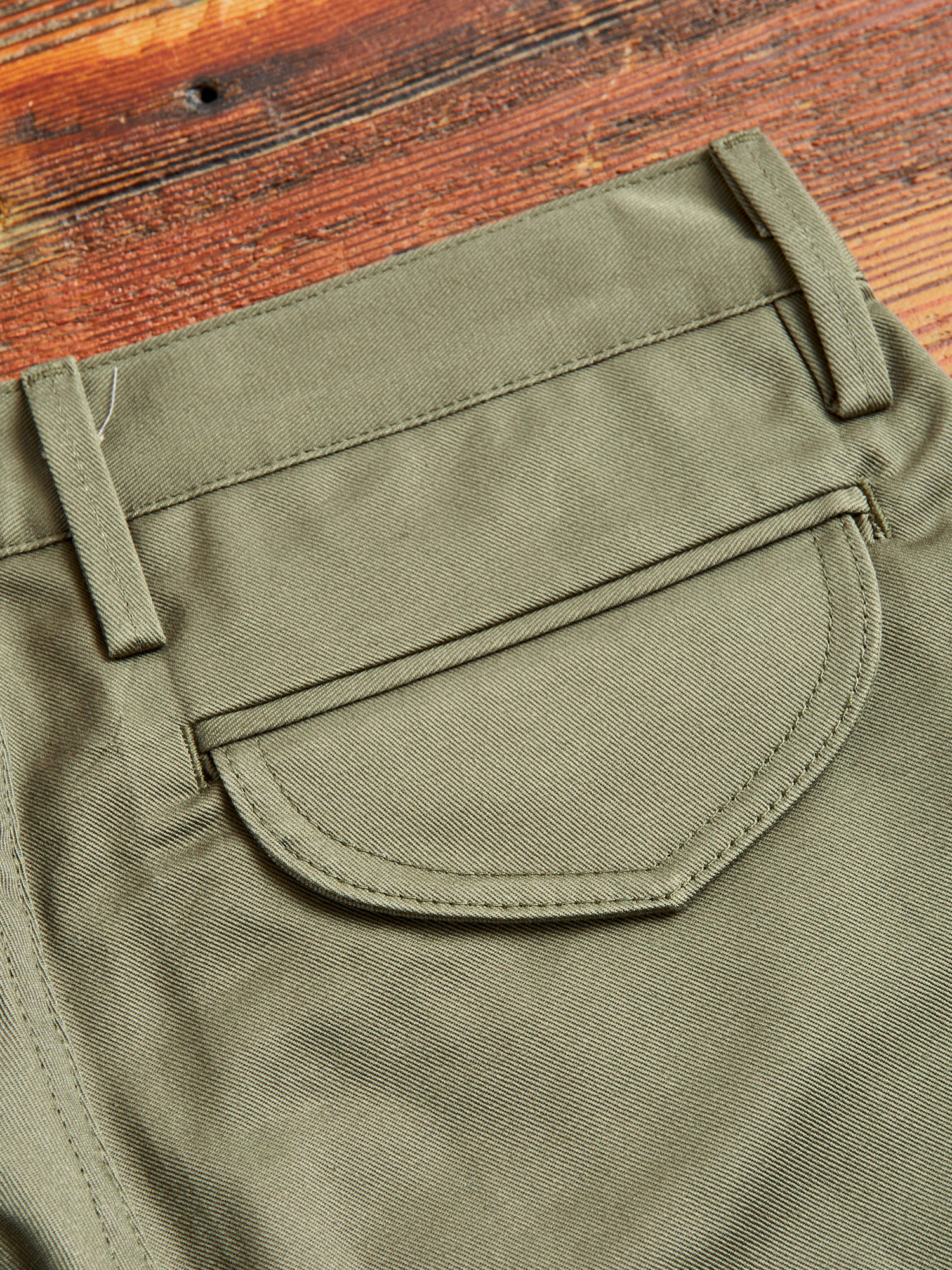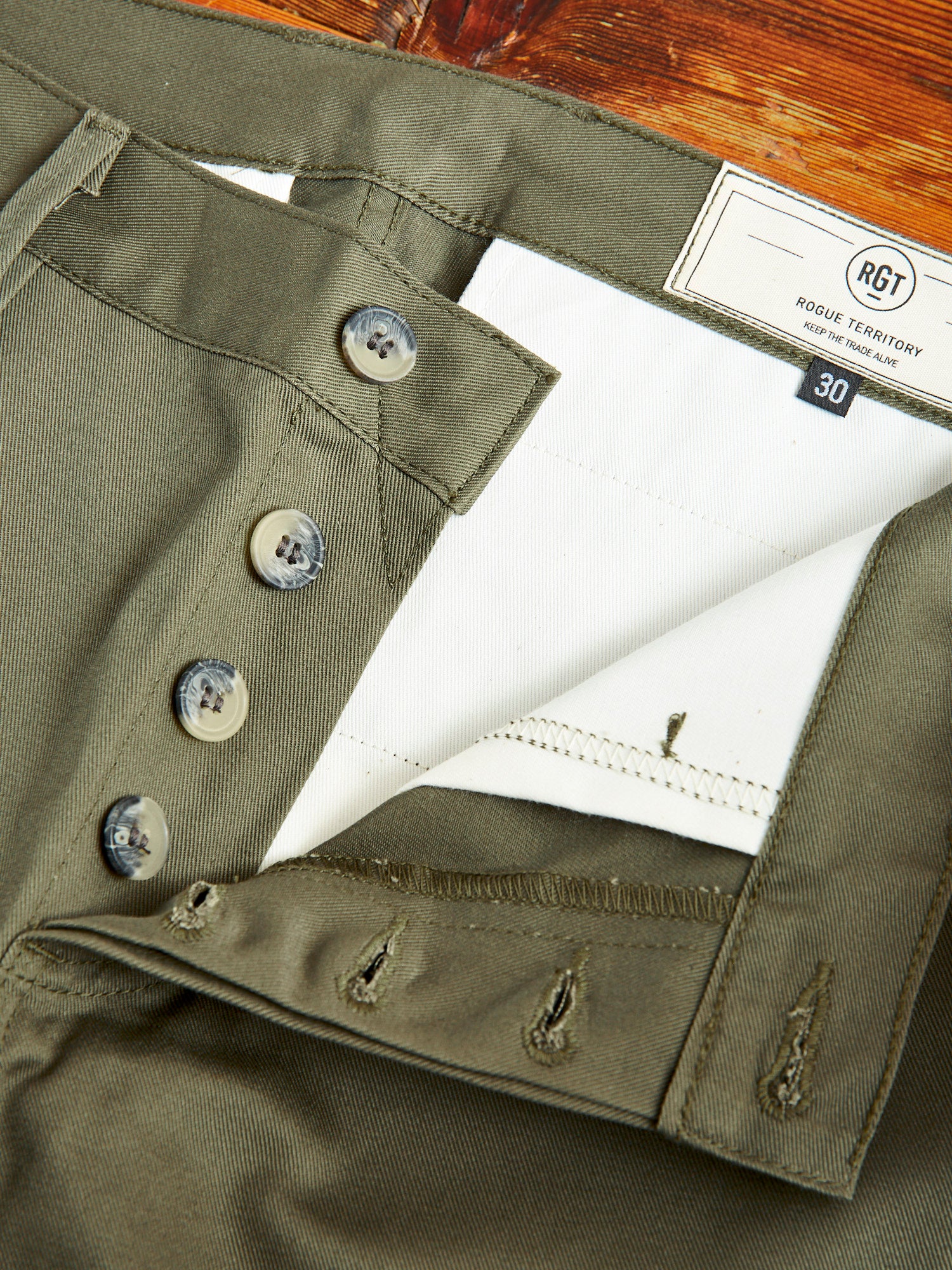 • The signature Officer Trouser from Rogue Territory is a slim-tapered trouser style pant featuring a classic slant pocket design. This model is sewn using a lightweight 9oz sanforized twill fabric. The pants are fitted with a back welt pocket with hidden flap that can be worn tucked-in or out, as well as hidden interior coin pocket, and bias tape-detailing on the side seams.
