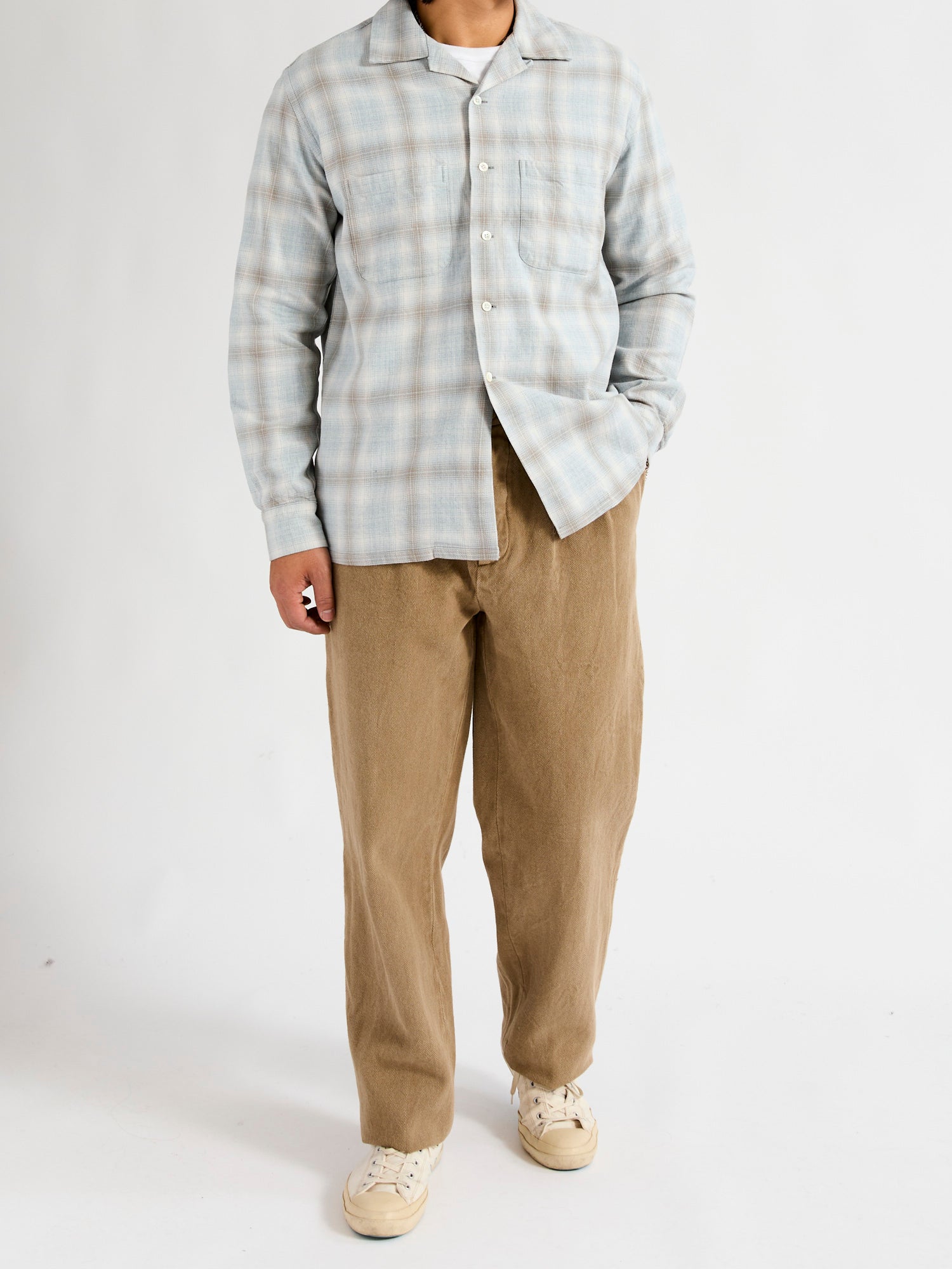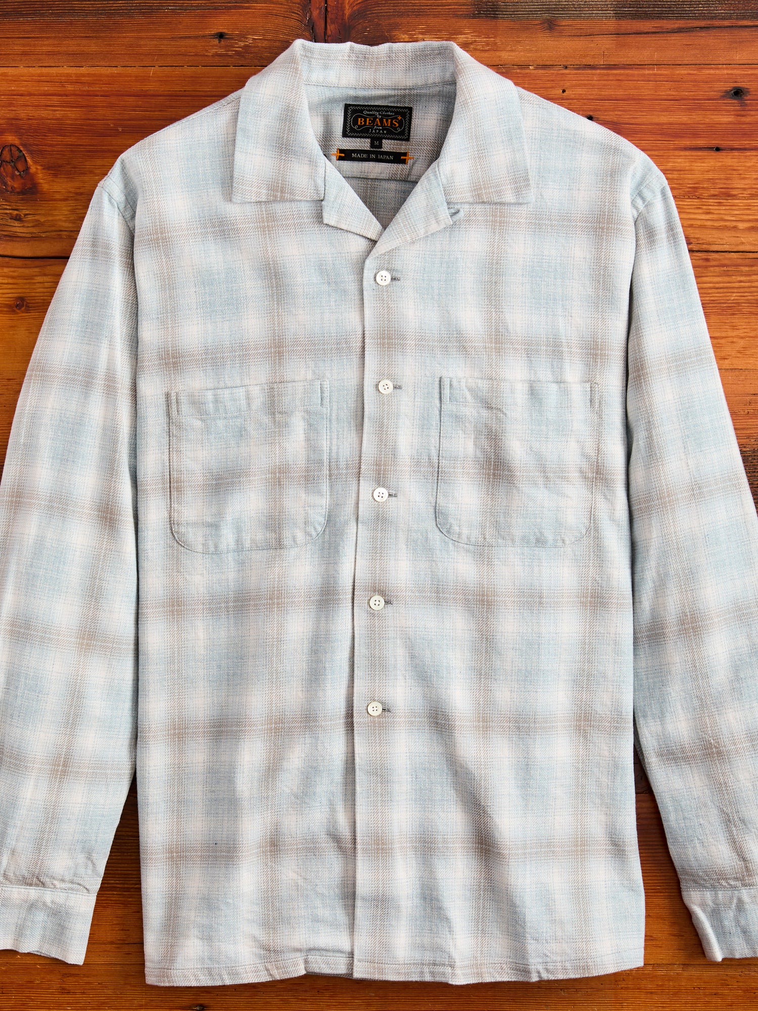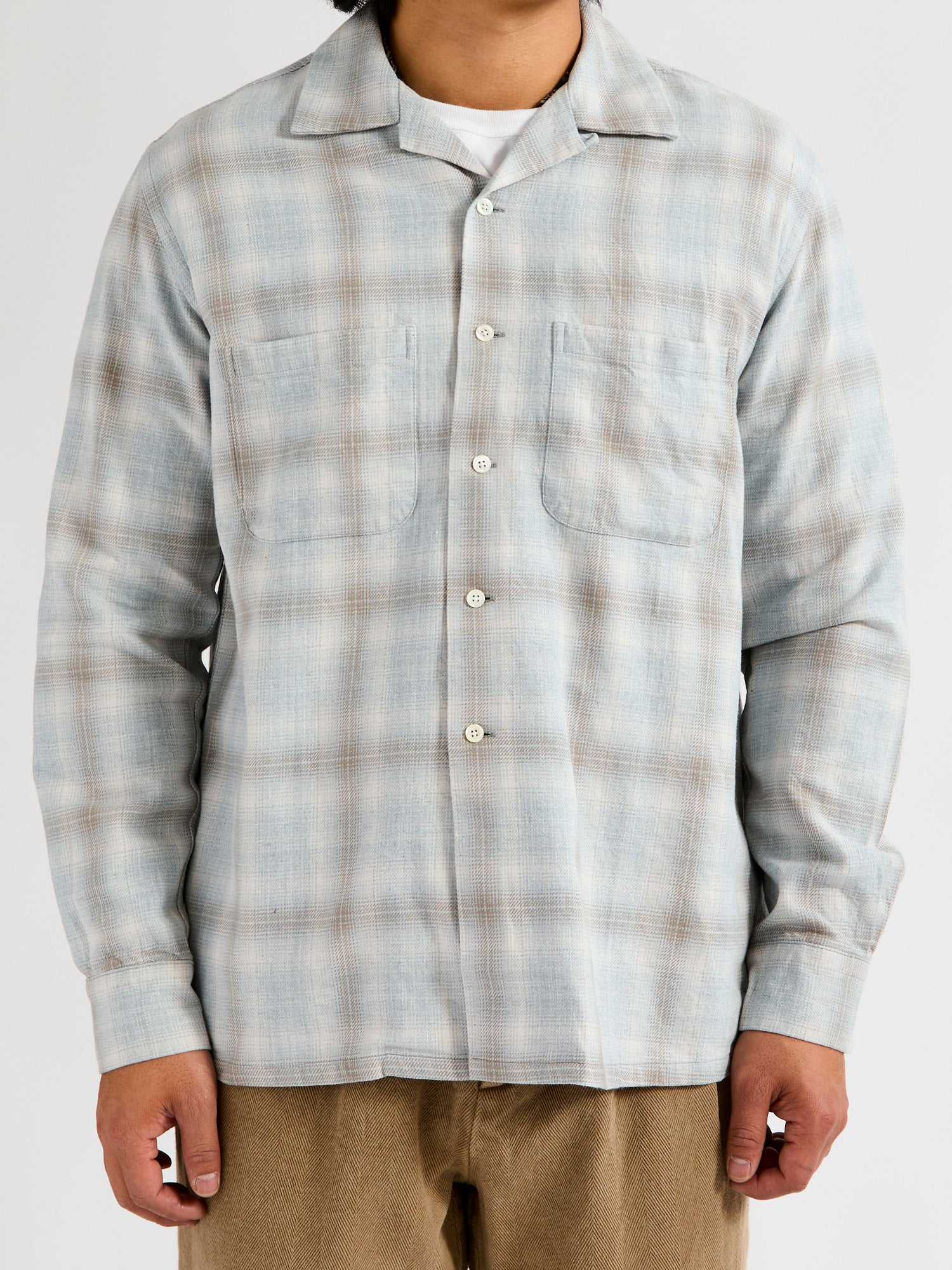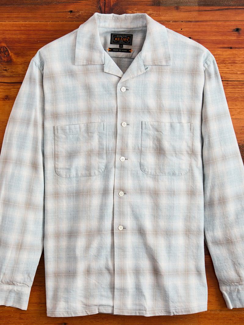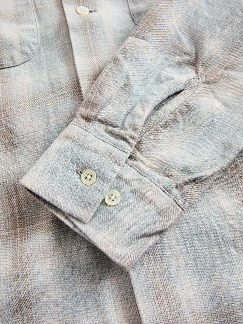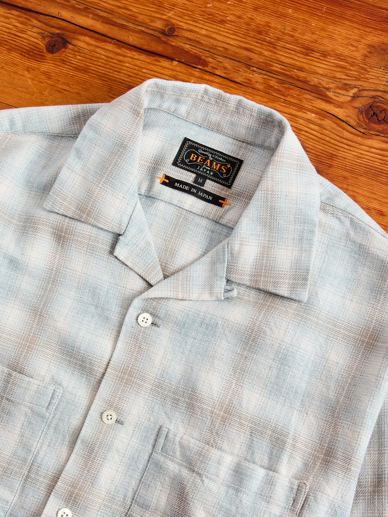 • This open collar button-down shirt from BEAMS PLUS is made from a ombre check fabric crafted using both reactive dye and indigo dyed yarn. Creating a melange shadow check pattern, this shirt will continue to transform and fade overtime. Modeled after American shirting from the 1950's, BEAMS shirting embodies the same Ivy League spirit with refined Japanese production.