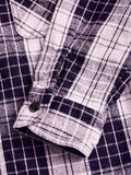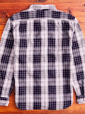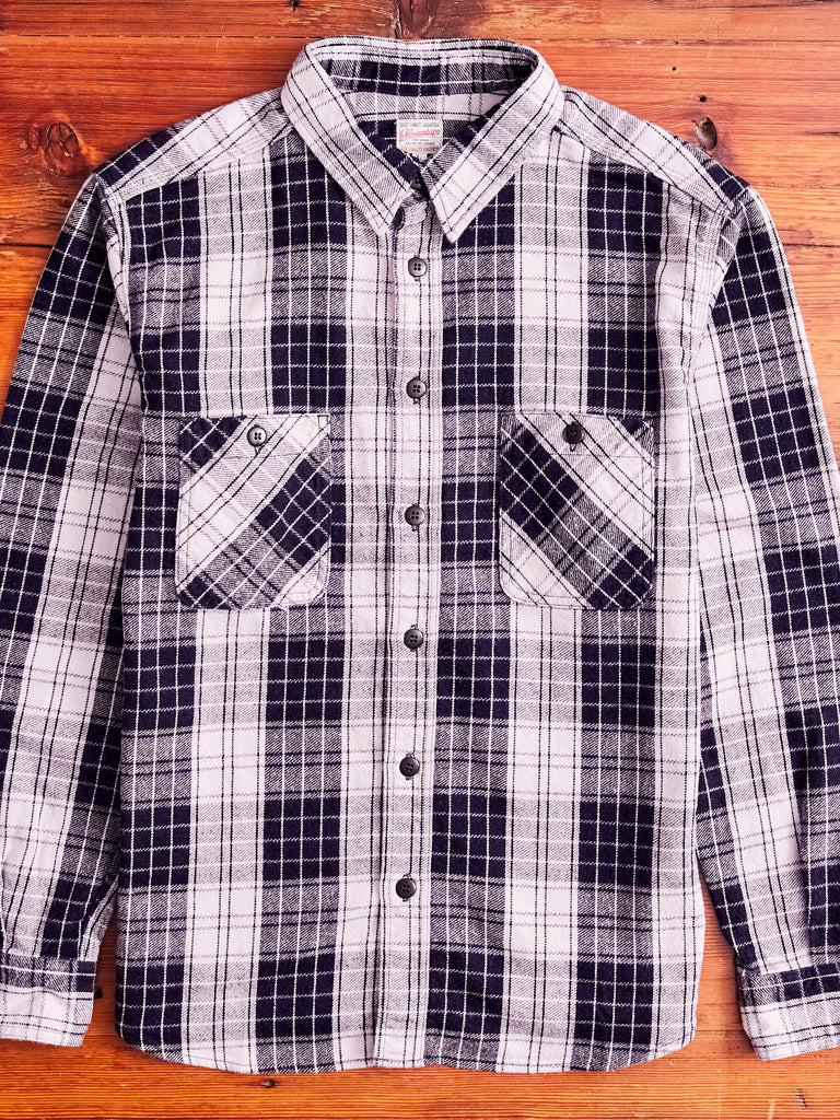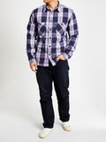 • Inspired by vintage workwear, this hard-wearing shirt from Momotaro is crafted using a mediumweight brushed flannel fabric from Japan. The fabric employs a twill weave incorporating indigo dyed thread with a carrying amount of texture and color throughout. The shirt comes detailed with two workwear style pockets at the front and triple needle construction on major seams.