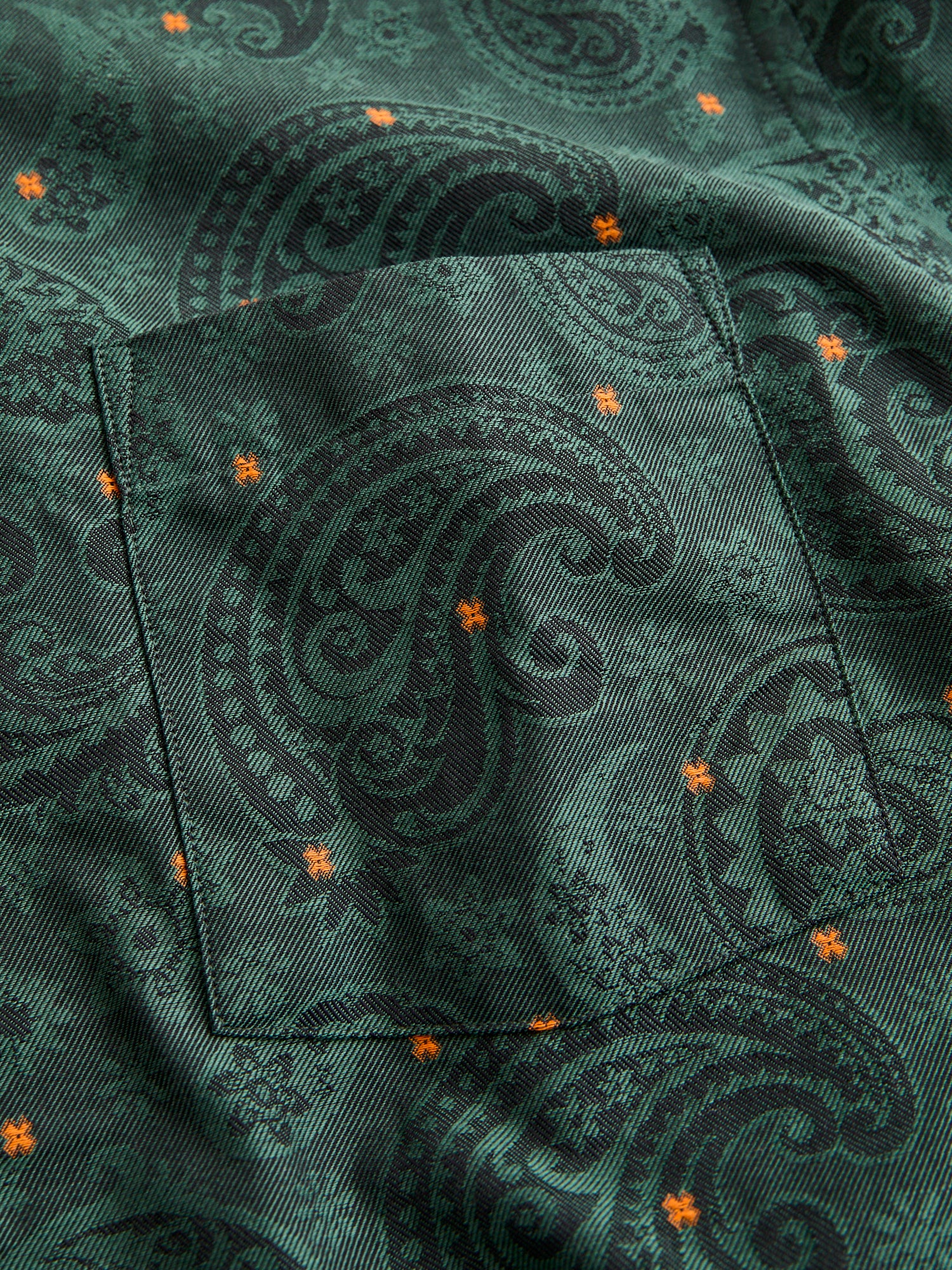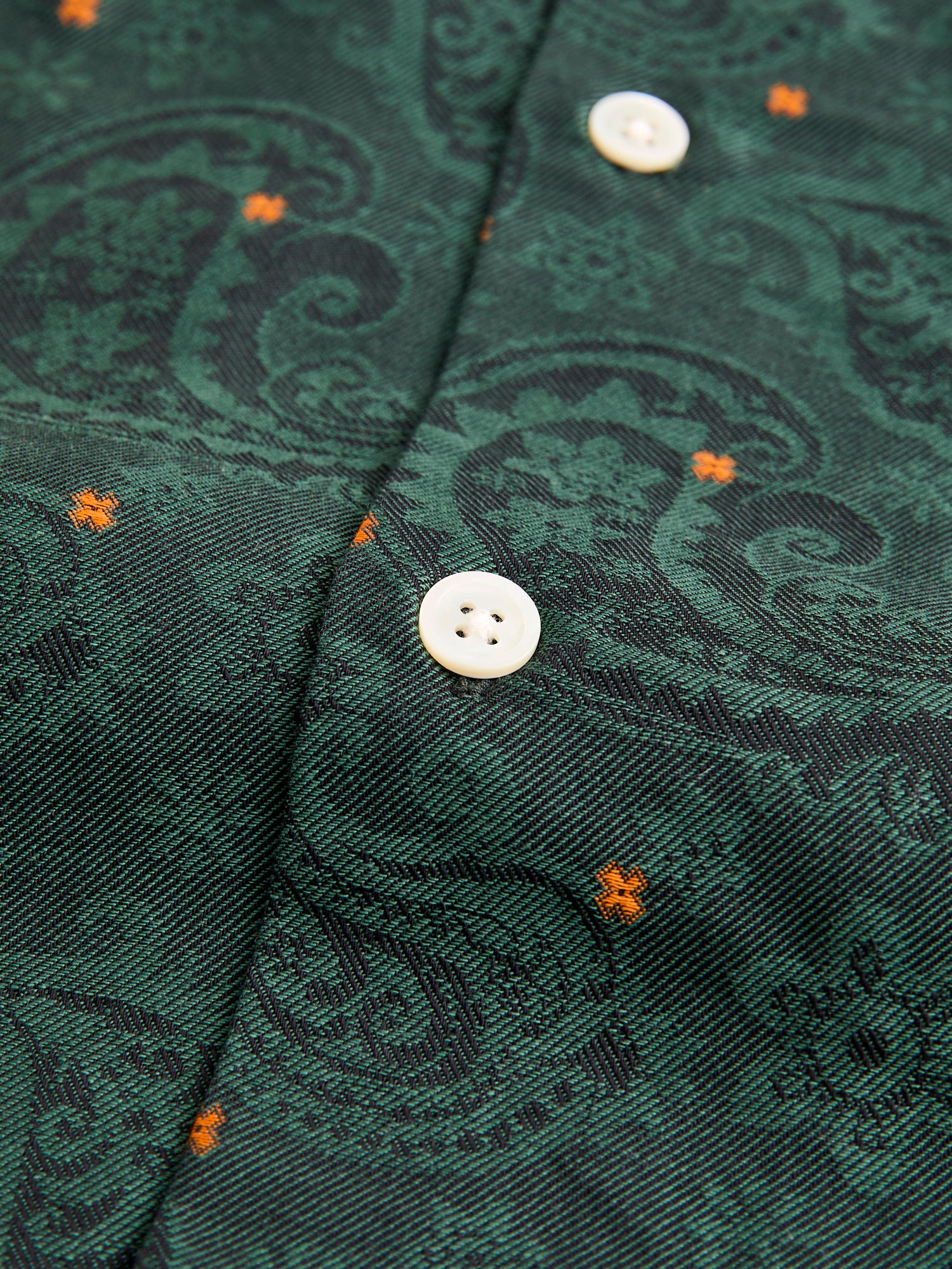 • This button-up shirt from Portuguese Flannel is a timeless shirt made using fabric from the brand's storied archive. The Paisley Jacquard shirt is comprised of a lightweight cotton fabric with a paisley design. Tailored in a regular fit and equipped with a single chest pocket.
