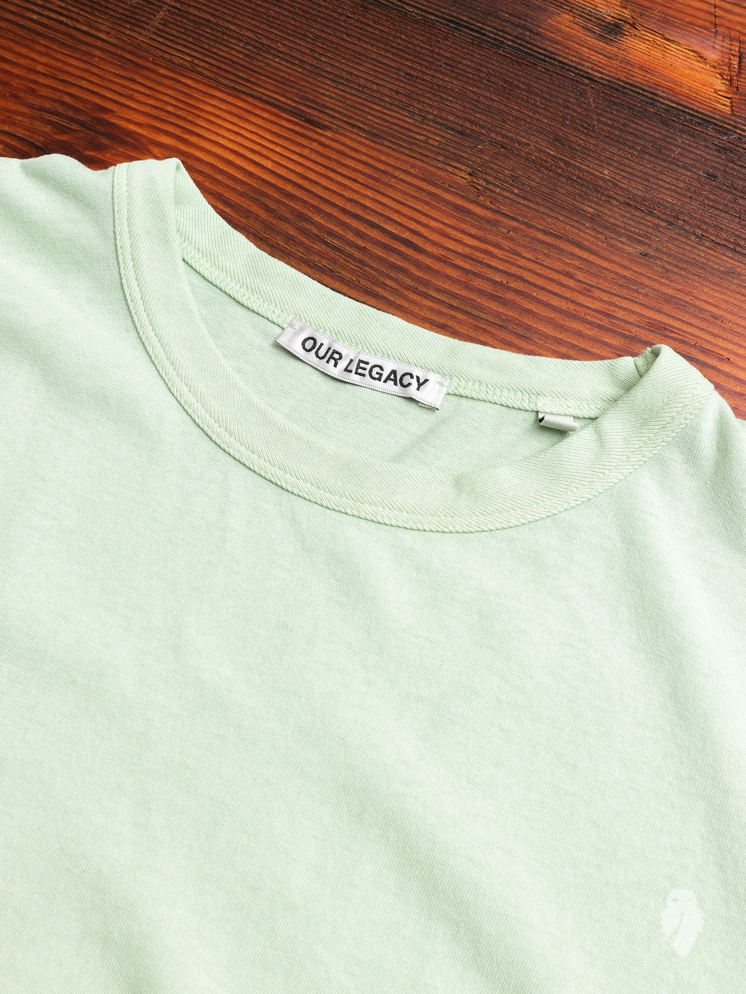 • Built from a military cotton jersey, OUR LEGACY's Perfect T-Shirt is designed as the ultimate t-shirt for any wardrobe. The t-shirt receives its beautiful color through a reactive dye process, and is cut in a trim silhouette for a tailored look. Sewn with a fine rib bound collar.
