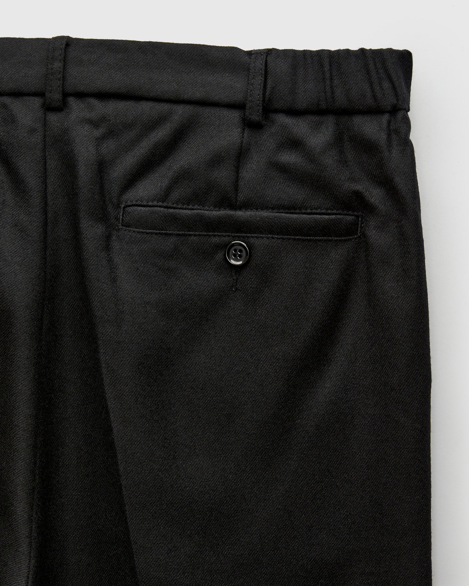 • The Pleated Trouser from 3sixteen is a relaxed and casual take on traditional suiting pants. Cut from a fine wool suiting twill from Portuguese wool experts Albano Morgano, the trousers have a soft, dense hand with an elegant drape. Finishing details include mini bartacks on the side pockets, tucked belt loops, and a partially elasticated waistband for increased comfort.