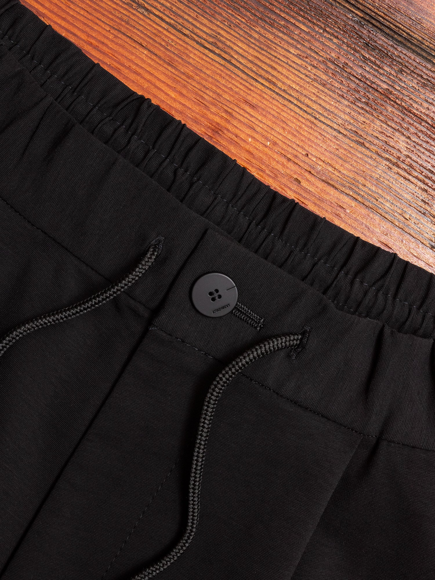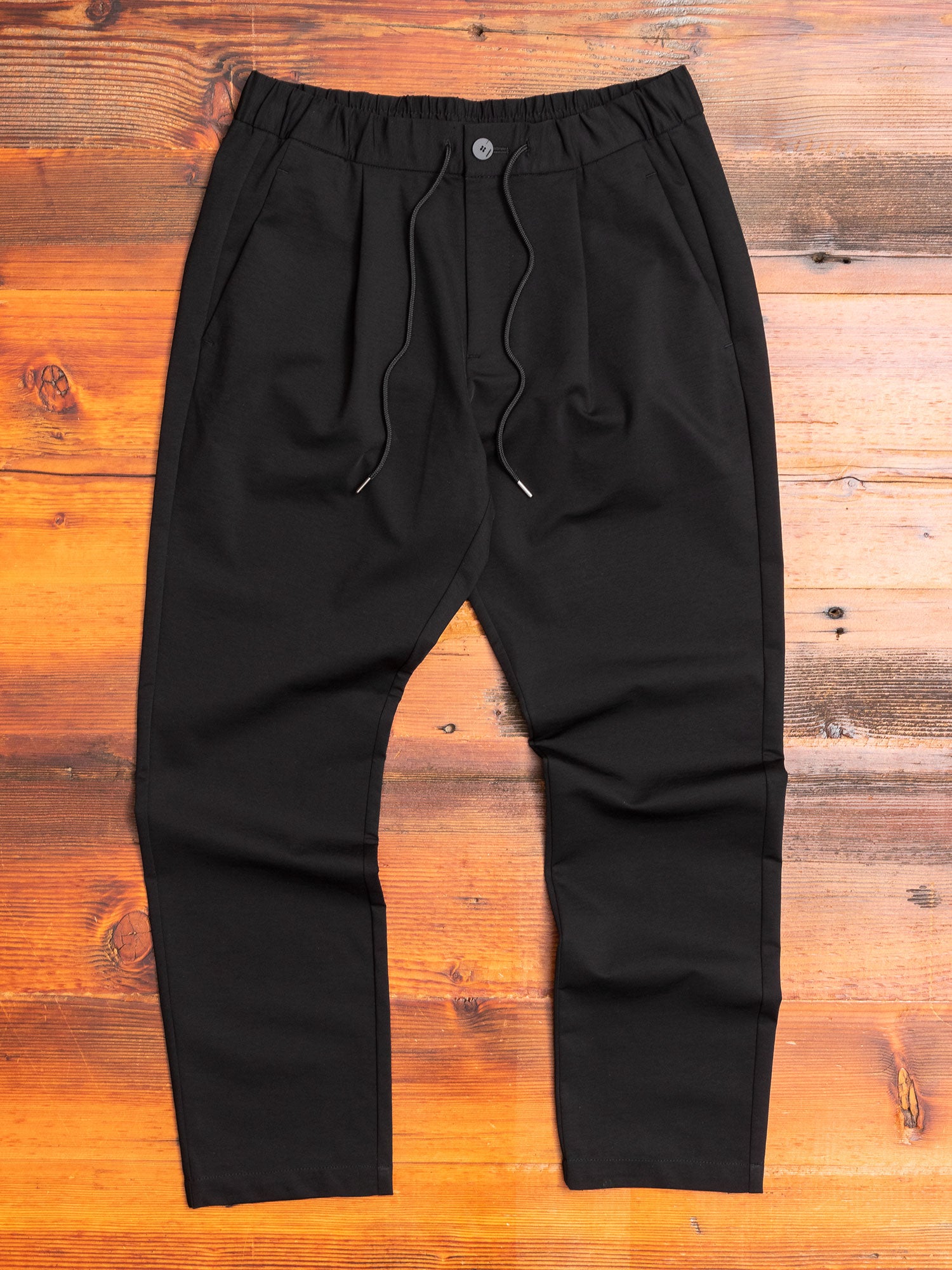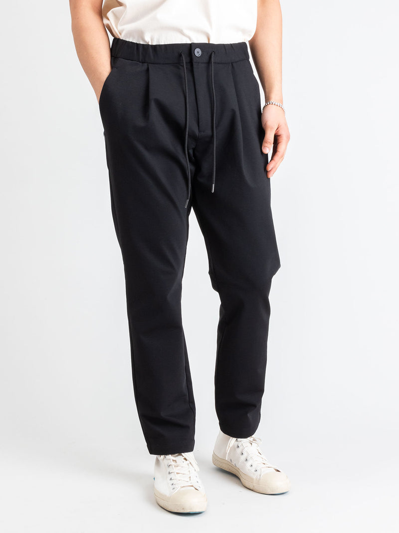 • The One Tack Easy Pants are a casual, relaxed style pant from ATTACHMENT. Constructed from a flexible Ponte Roma fabric, the easy pants are detailed with signature Kazuyuki Kumagai style through a single asymmetrical tack pleat at the waist. The pants are cut with a relaxed top block and a sleek taper through the leg, and come equipped with an elastic stretch waistband to complete the convenient and comfortable style.