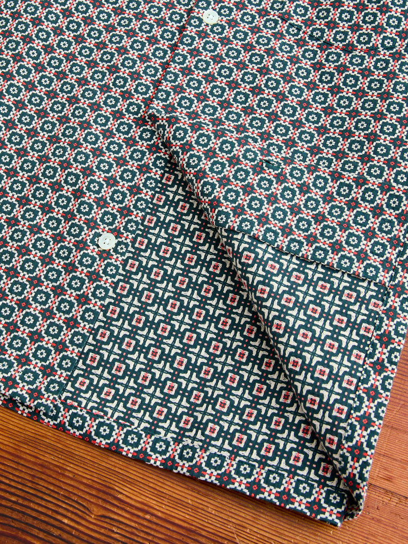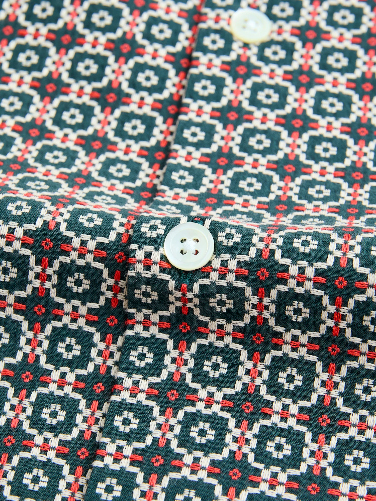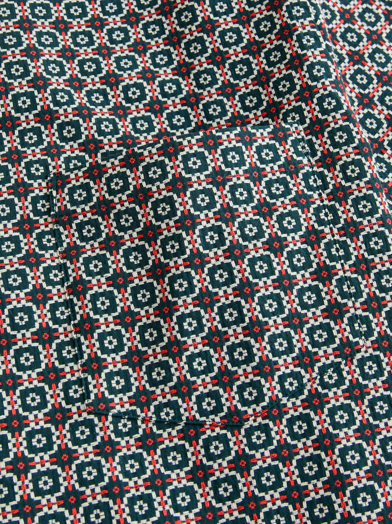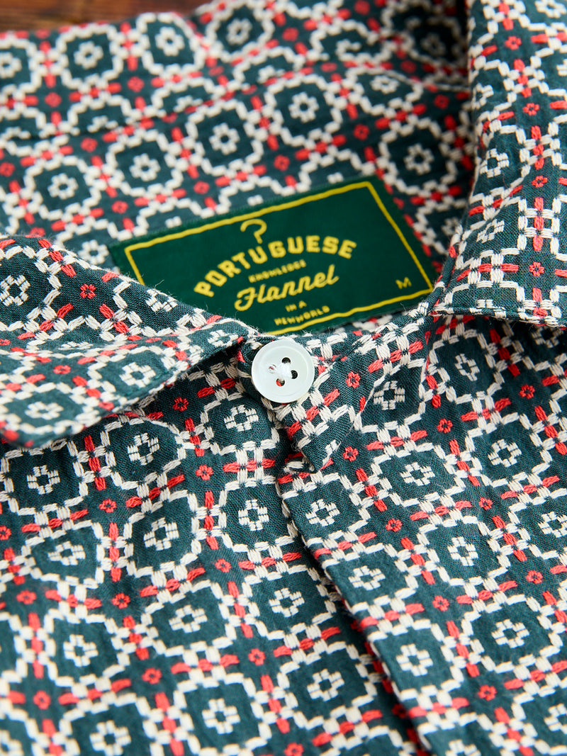• This button-up shirt from Portuguese Flannel is a timeless shirt made using fabric from the brand's storied archive. The Portuguese Tile shirt is comprised of a lightweight cotton fabric with a block printed. Tailored in a regular fit and equipped with a single chest pocket.