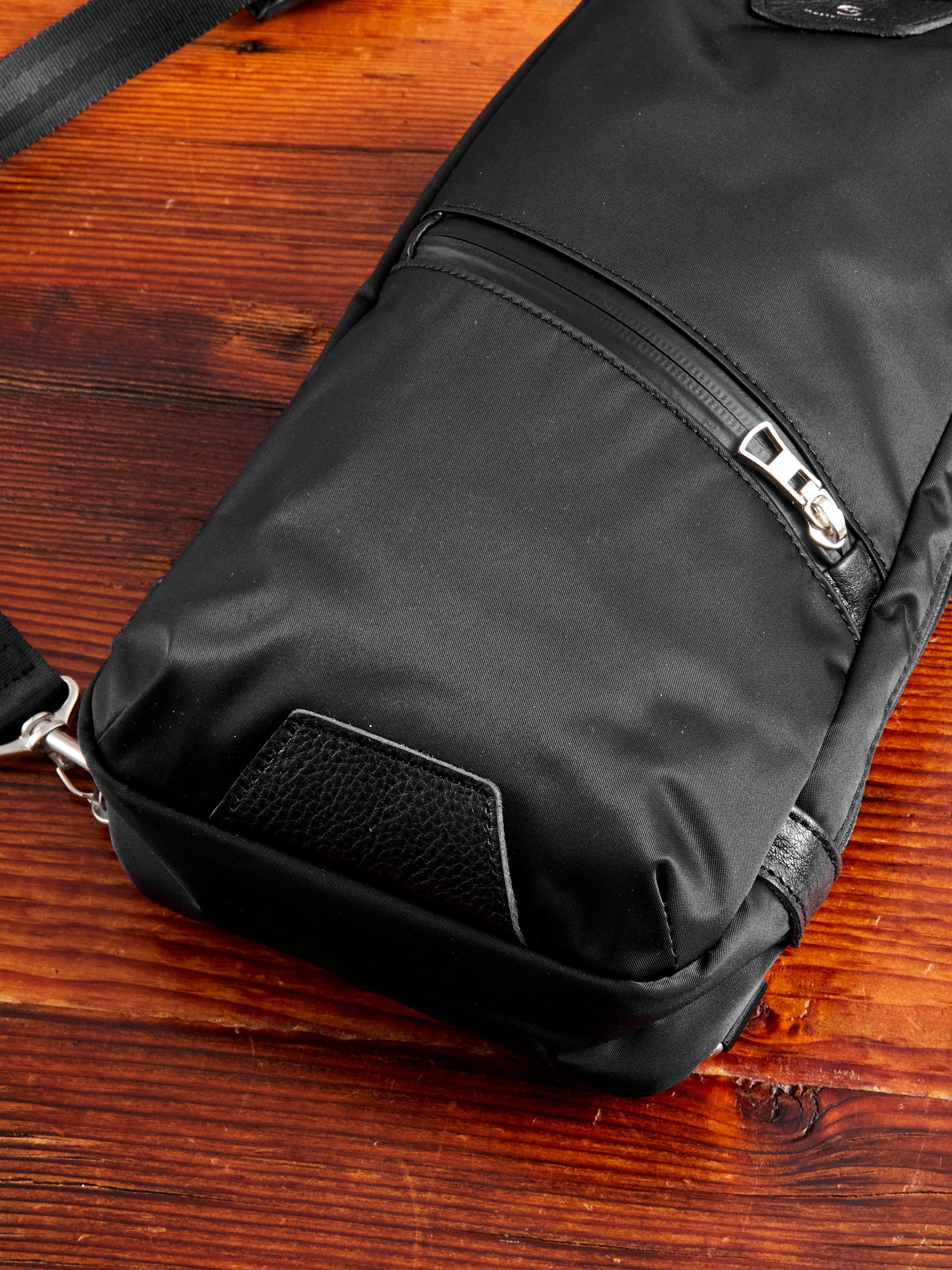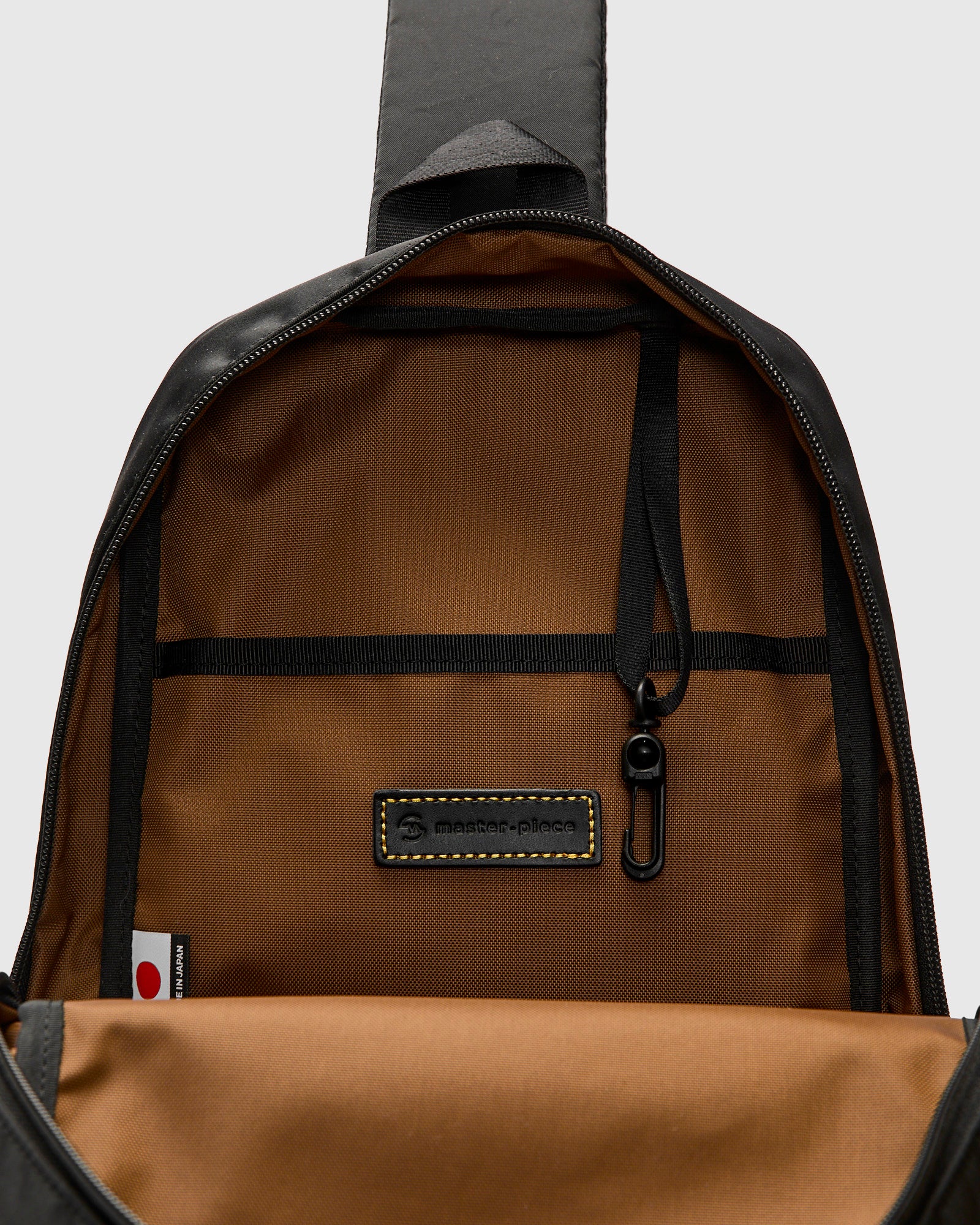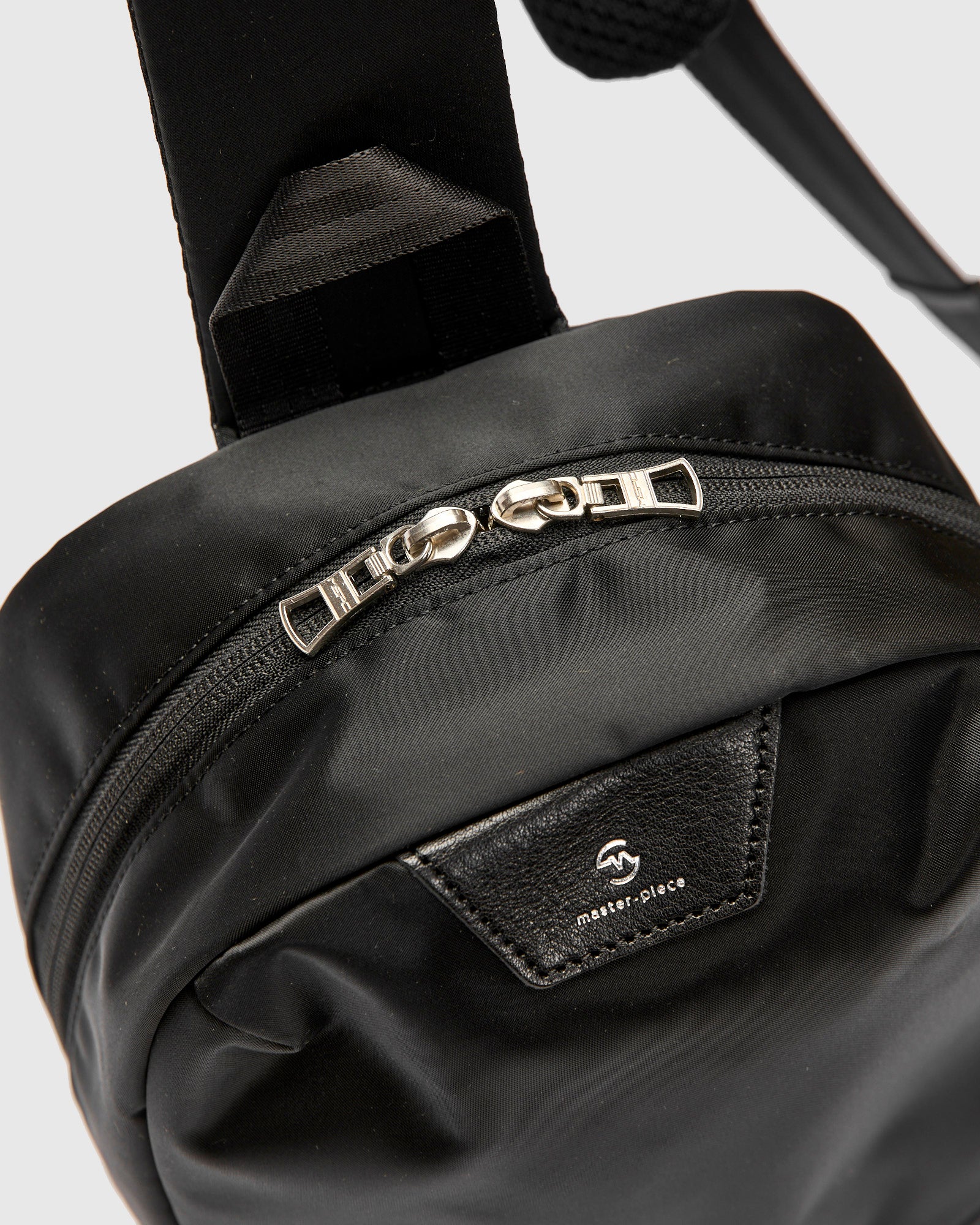 • The Progress series from Master-Piece is constructed using PVC coated nylon as the main material, providing ample water resistance and flexibility. The high quality material, along with the supple leather trim, makes for a sleek modern bag. The sling bag is a small day-bag which features a large central compartment, adjustable shoulder strap, and top-of-the-line hardware.