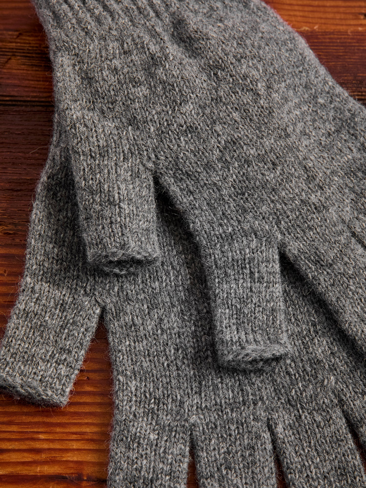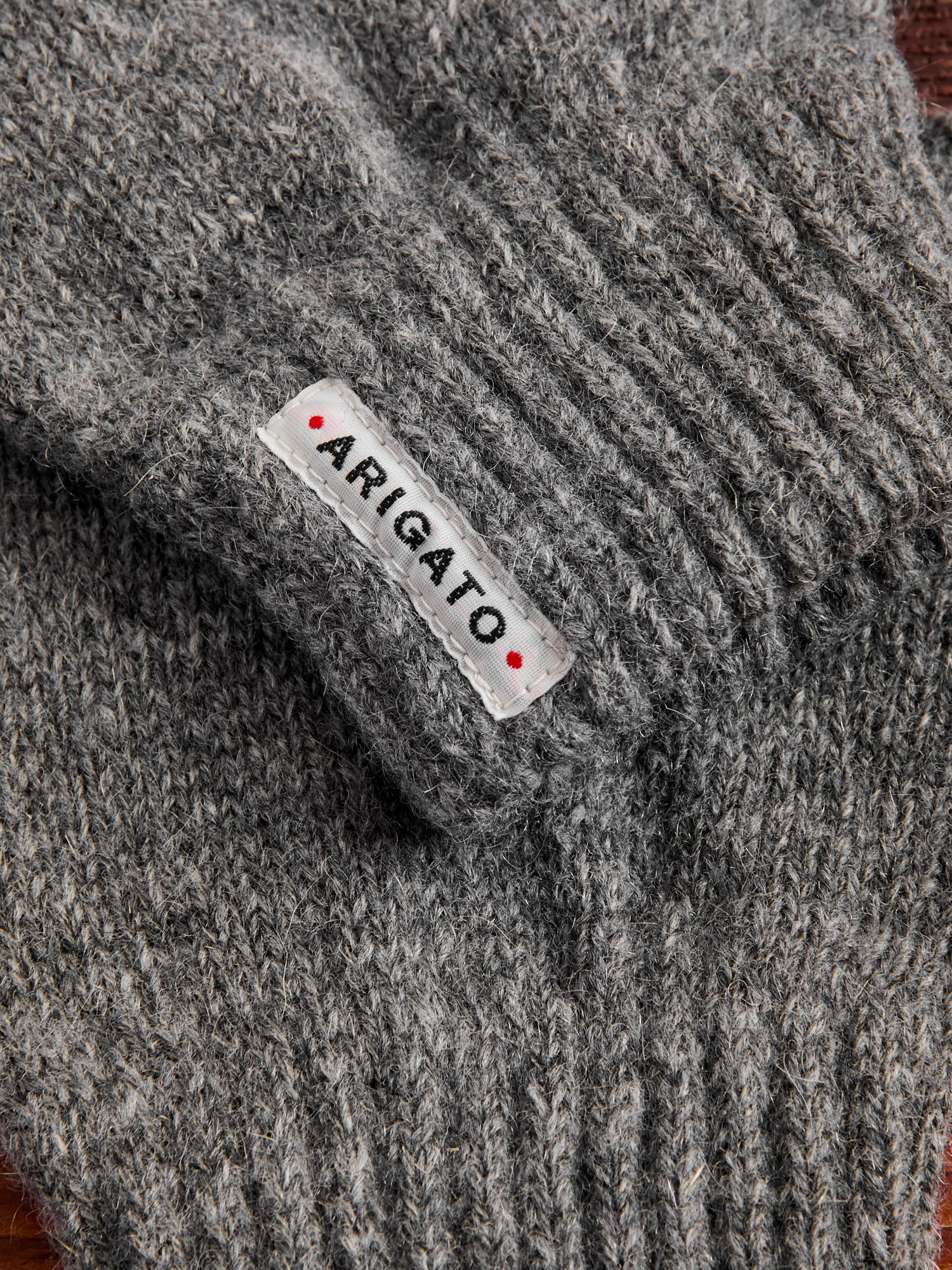 • These warm wool gloves are knit and crafted in Tokyo, Japan, making use of recycled wool and cashmere fibers. The fingerless style allows for full functionality with touchscreen phones. Finished with ribbed cuff and classic Blue Blue Japan "Arigato" label.