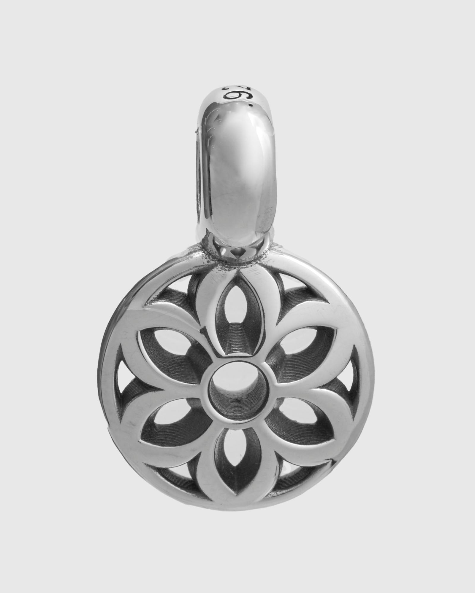 • Cast in-house, the Rosette Disc Pendant is a necklace charm complete with Good Art's cutout rose motif at the center. Designed to fit on Good Art's Ball Chain, Pequeno, and Curb Chain accessories. The disc is cast entirely in .925 silver and finished and polished to perfection in their Los Angeles Foundry.