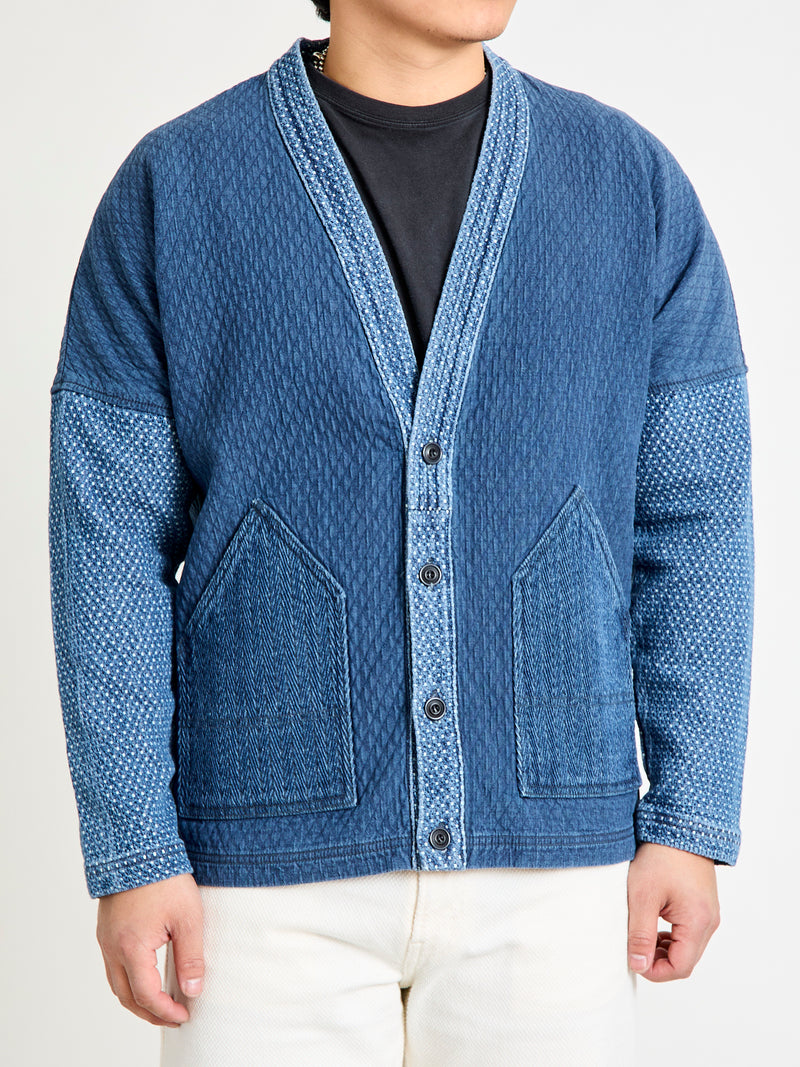 • The Sashiko Cardigan is an innovative take on the classic sweater style. Crafted using an array of fabric patches, this uniquely FDMTL garment blends elements of traditional Japanese attire through a variety of sashiko-inspired jacquard weaves. This iteration features a transformative wash designed to emulate years of wash and wear. Together, the patterns create a patchwork appearance synonymous with the Tokyo brand's signature aesthetic.