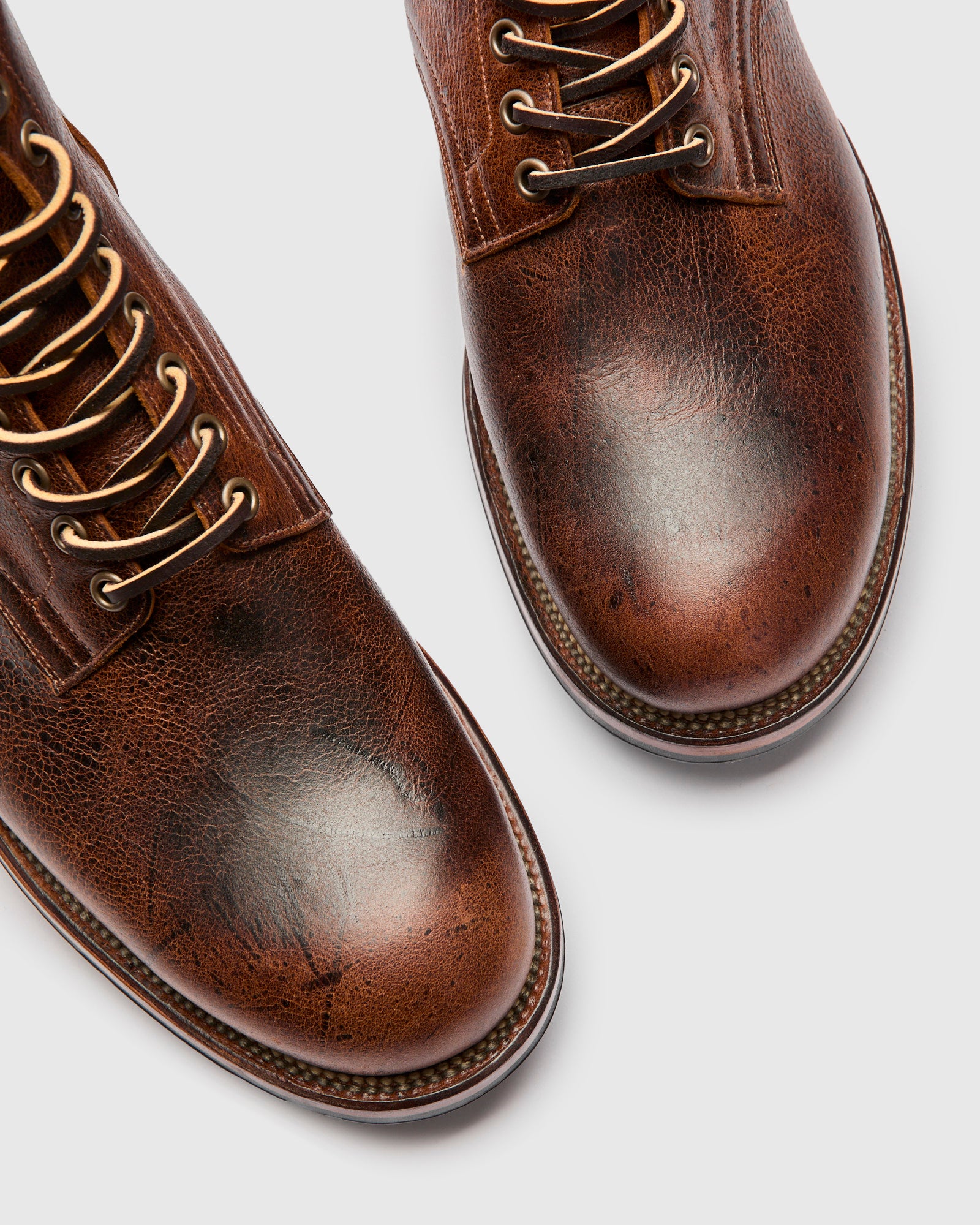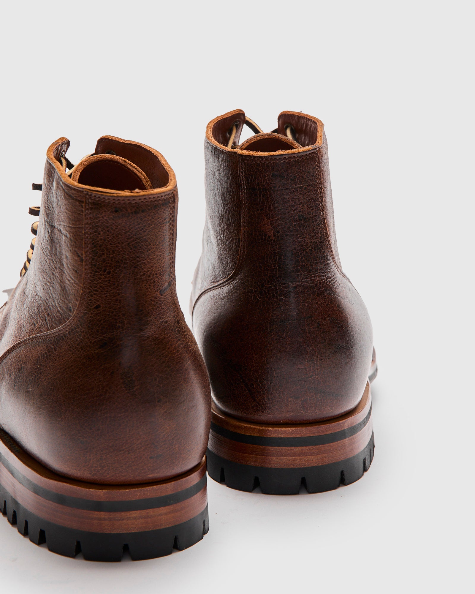 This iteration features C.F. Stead's Naked Kudu leather, a soft and full-bodied hide that showcases the natural wear marks of the antelope's life throughout the African savanna. The leather offers a subtle pull-up for a slow, rich development over time. Fitted with lugged Commando outsoles and Viberg's signature stitchdown construction for an enduring and resoleable finish.