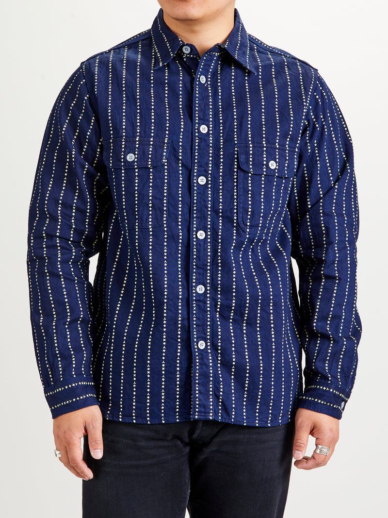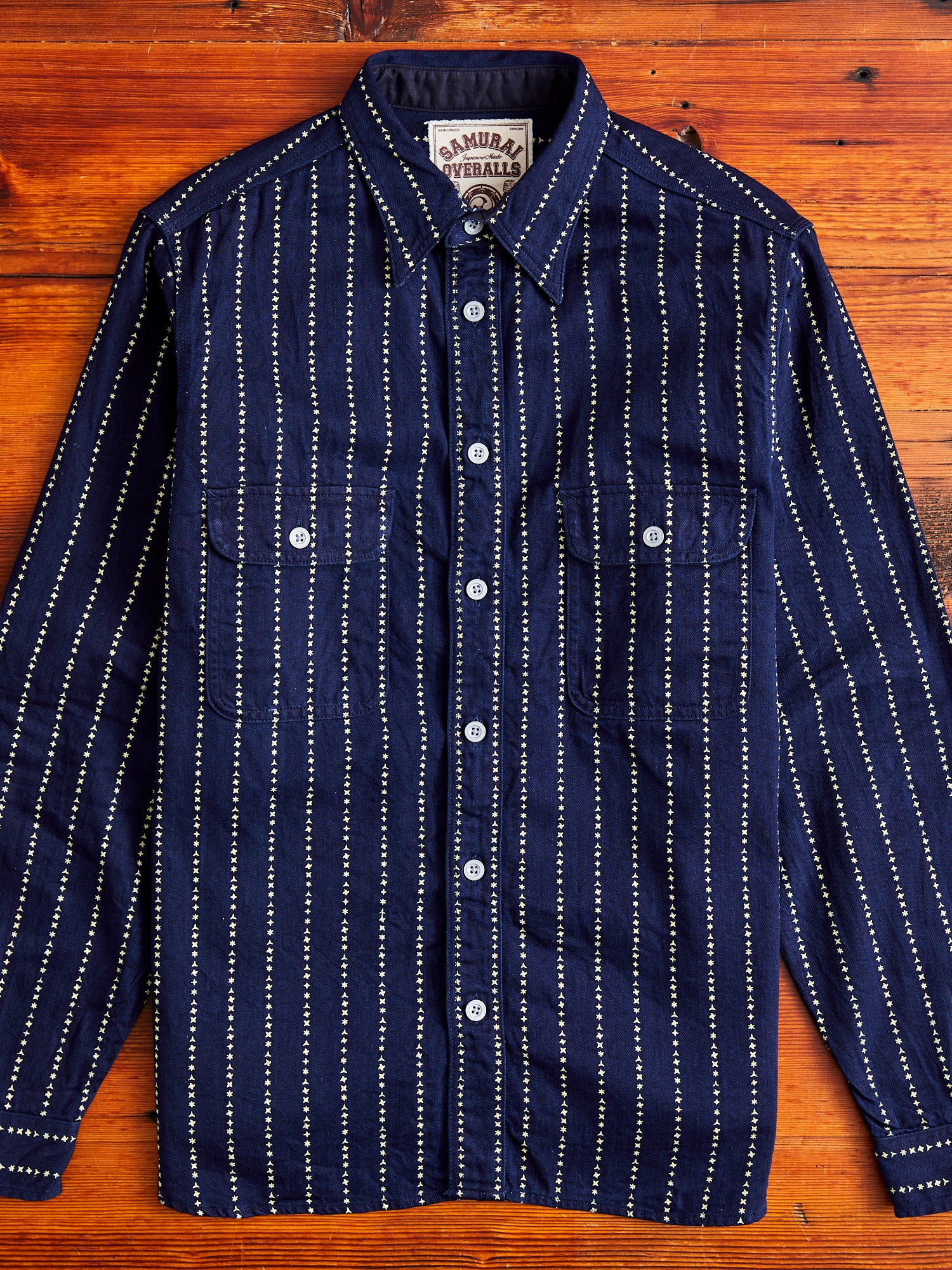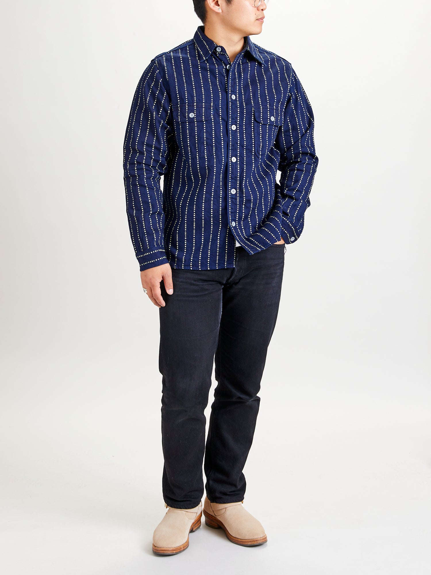Shuriken Wabash Stripe Work Shirt in Indigo Black