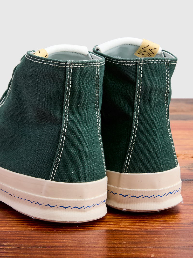 • A timeless silhouette, the visvim® Skagway Hi is designer Hiroki Nakamura's take on the classic canvas sneaker. Handmade using Japanese High Twist Cotton Canvas, this iteration features cork insoles and a custom Vibram outsole. A testament to Nakamura's attention to detail, the sneaker features an array of updated details, including gunmetal-tone hardware, thick-knit cotton laces, and leather accents along the tongue and heel of the shoe.