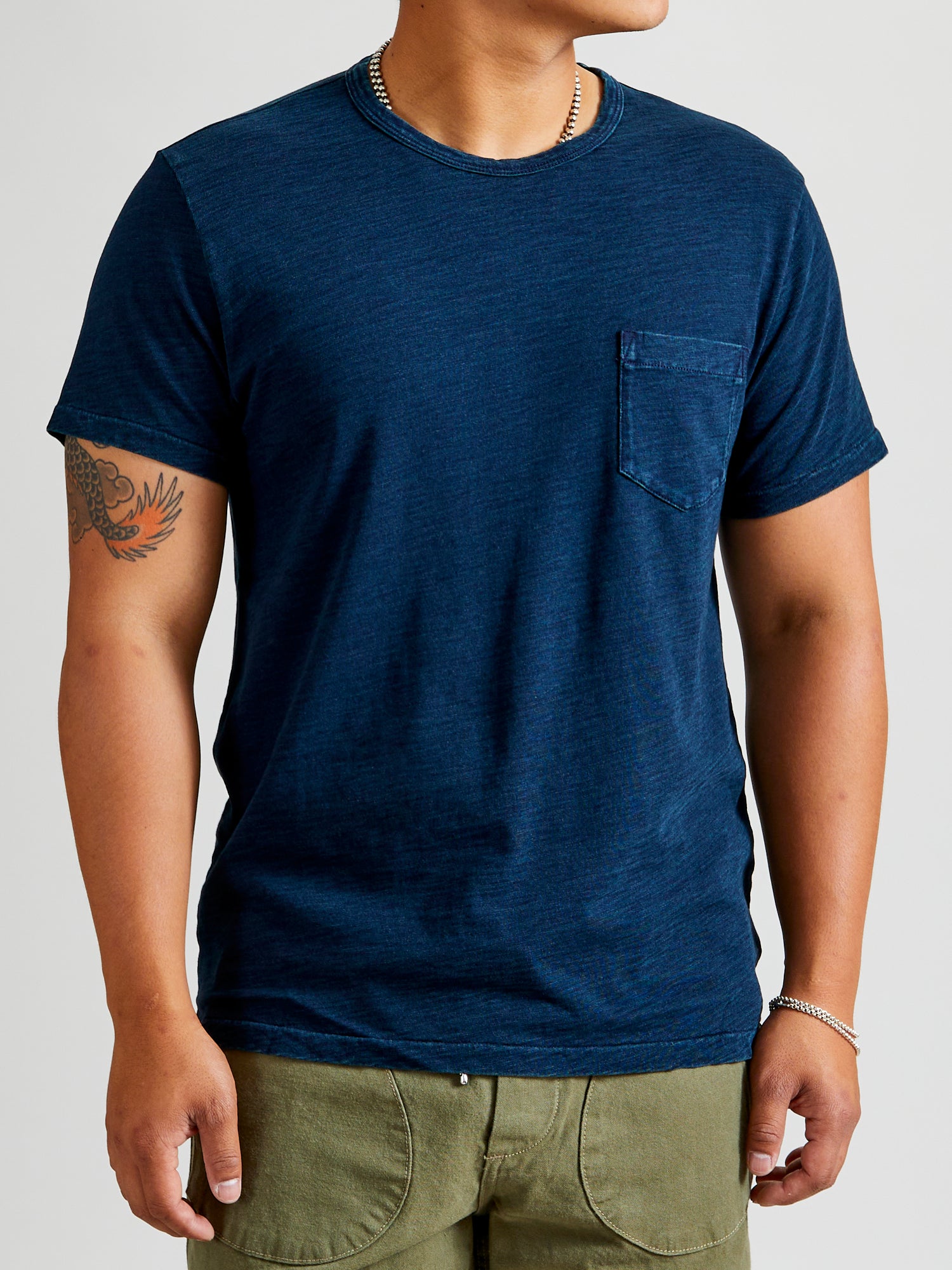 • Built from lightweight slub cotton jersey, this textured t-shirt from RRL is designed as an homage to the American west. The shirt employs authentic early 1900s machinery in the construction process, and has undergone a special indigo-dye process for a rich color that will continue to transform with wear. Cut in a regular-style vintage fit.