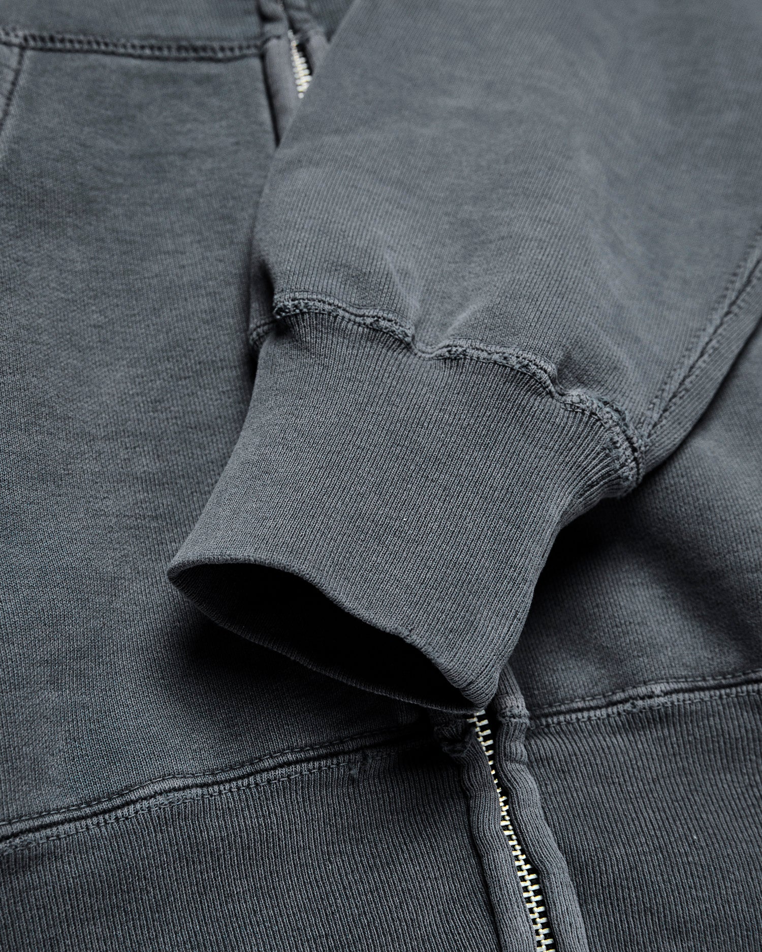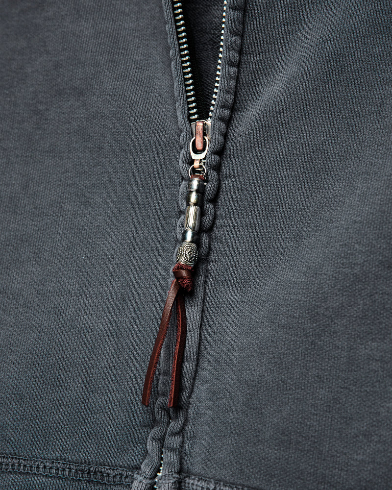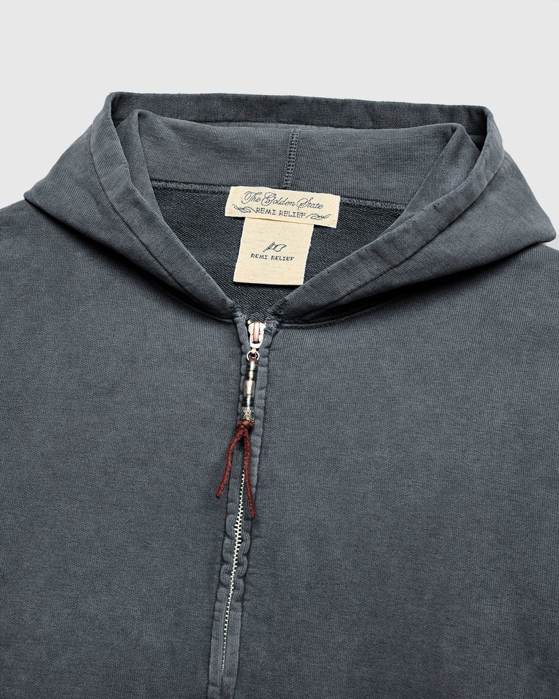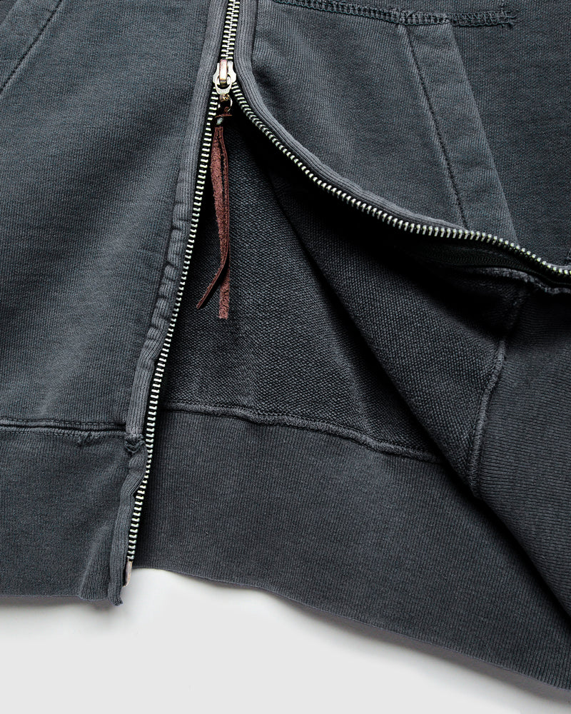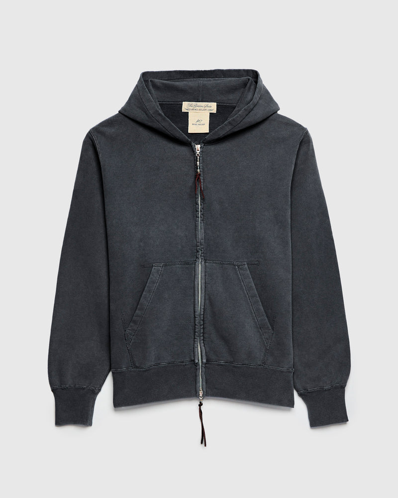 • Crafted entirely in-house, Remi's Special Finish sweaters are direct dyed and treated with an oxide-distress treatment to replicate the look and feel of naturally timeworn garments. The Special Finish Hoodie mimics sweatshirts from the 1930s to late 1960s, made using the brand's heavyweight cotton fleece and stitched with era specific detailing. Fitted with handwarmer pockets, western-leather tassel silver bead zip, and a streamlined hoodie free of drawstrings.