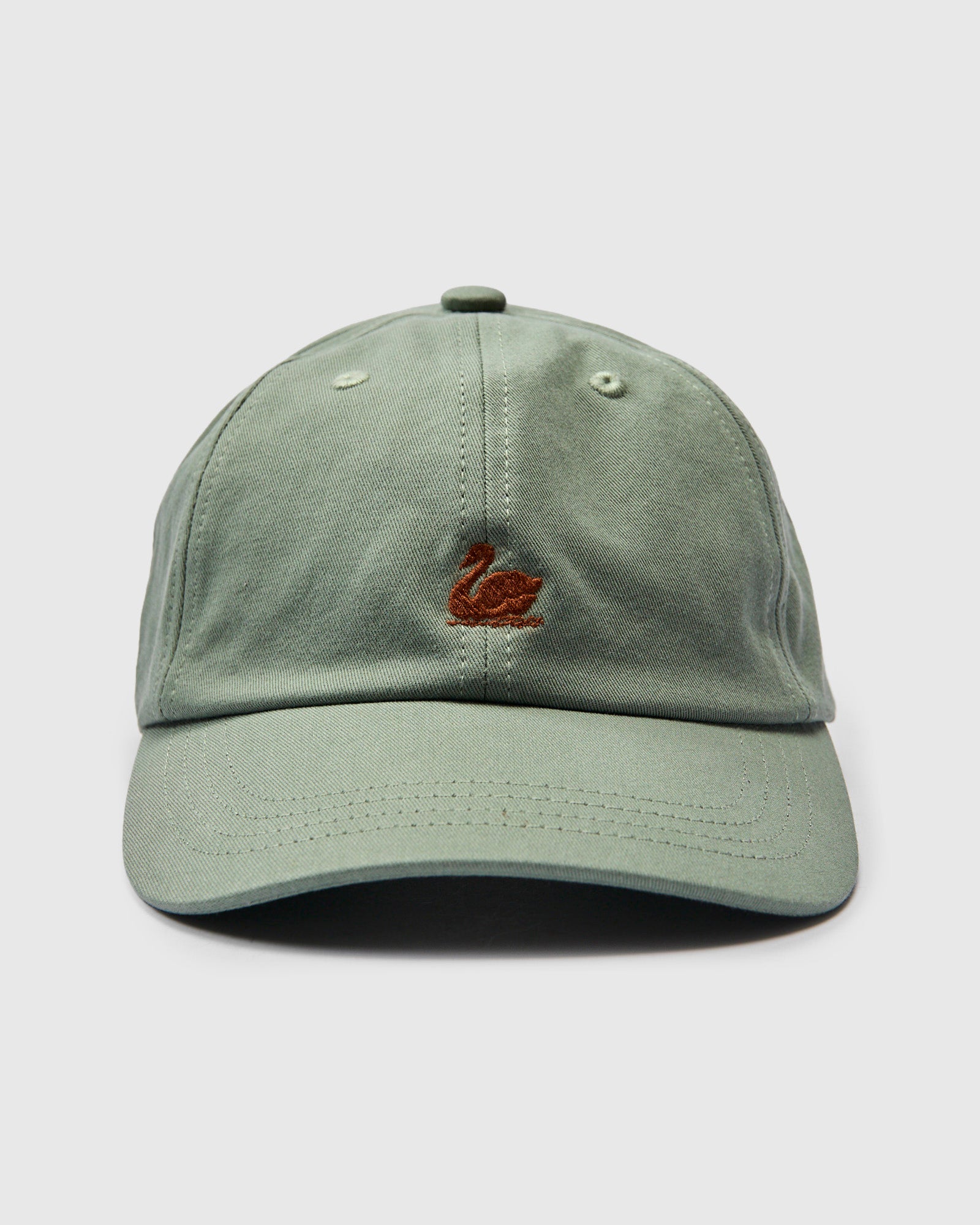 • The Swan Logo Cap is a low-profile baseball cap embroidered with Merz b. Schwanen's swan logo motif at the crown. Made using organic cotton twill in a classic six-panel design, the hat features tonal eyelets and an adjustable rear strapback.