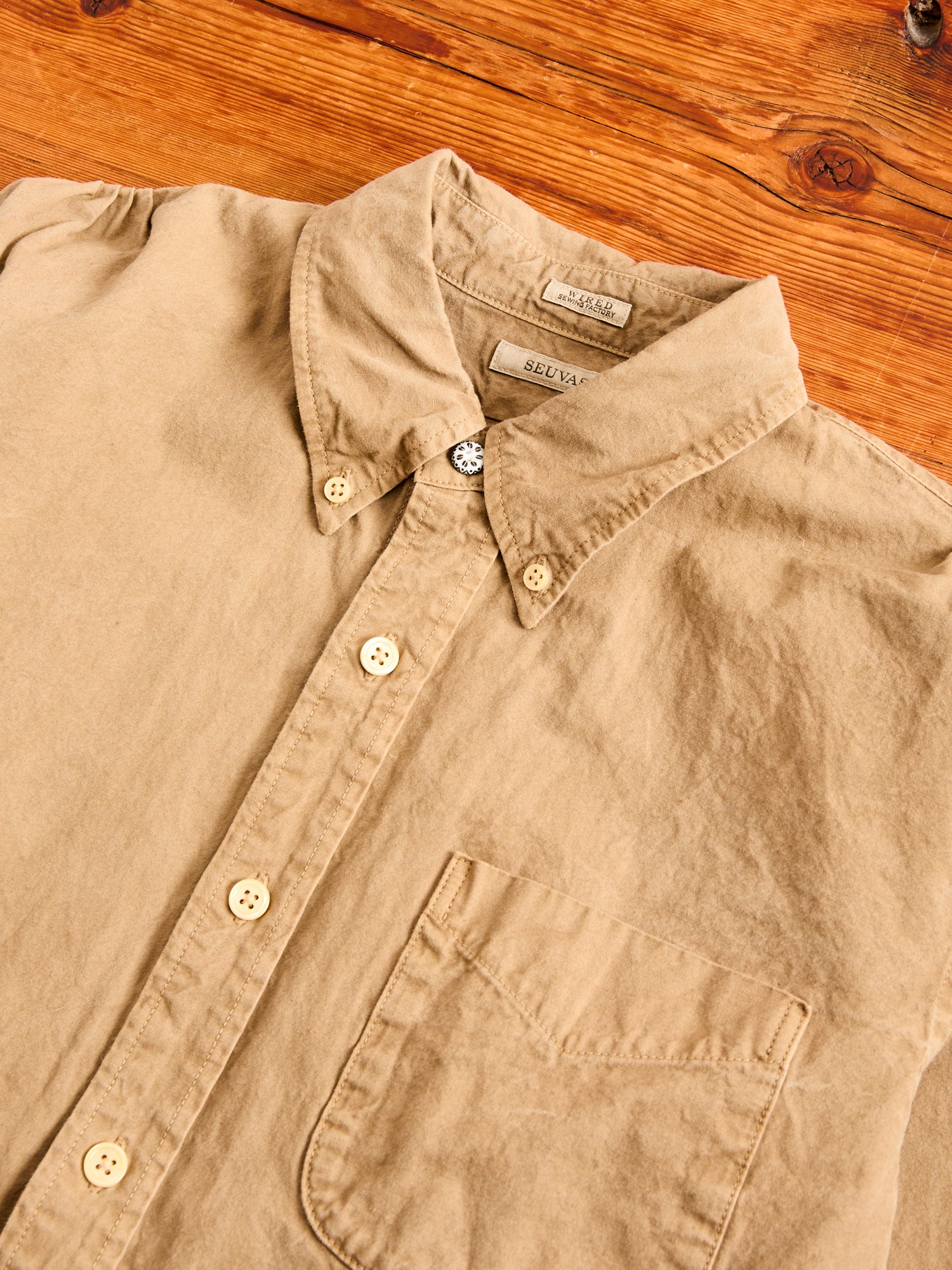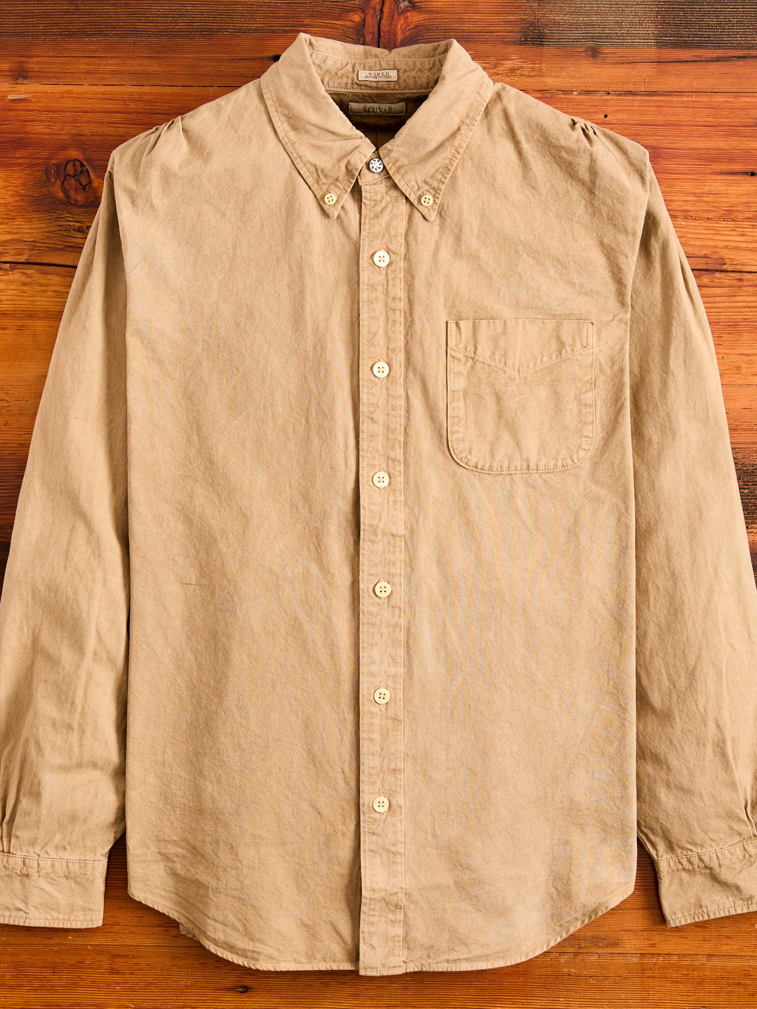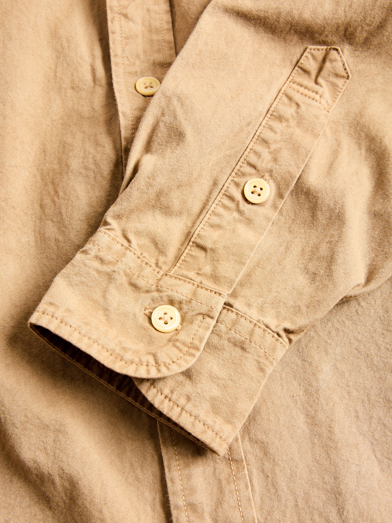 • Crafted from the world’s finest canvas, SEUVAS’s Tassa Authentic Button-Down Shirt is made from Kurashiki Hampu, a renowned fabric celebrated for its texture and durability. Originally used in boat sails, Kurashiki Canvas is woven on century-old shuttle looms accentuating the natural cotton fibers nep texture and durability. Made in partnership with local Japanese cafes, the brand recycles coffee grounds for their dyeing process, echoing the brands commitment to reuse and sustainability. The shirt comes sewn on vintage machinery and features reinforced double needle construction throughout.