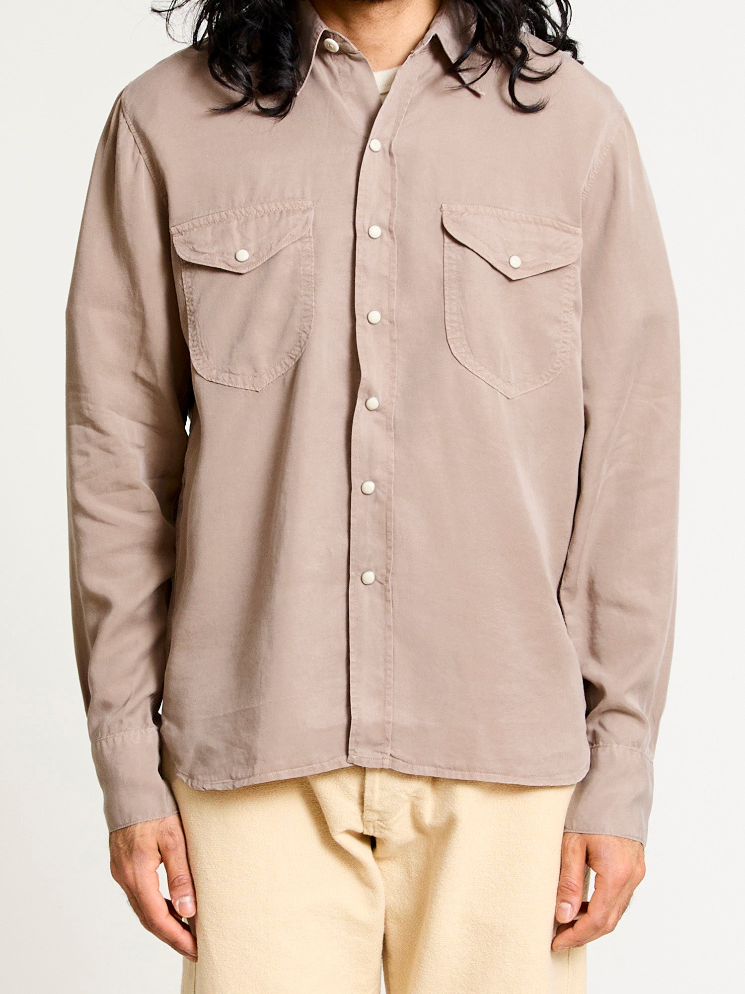 Tencel Gabardine Pearl Snap Shirt in Nutmeg