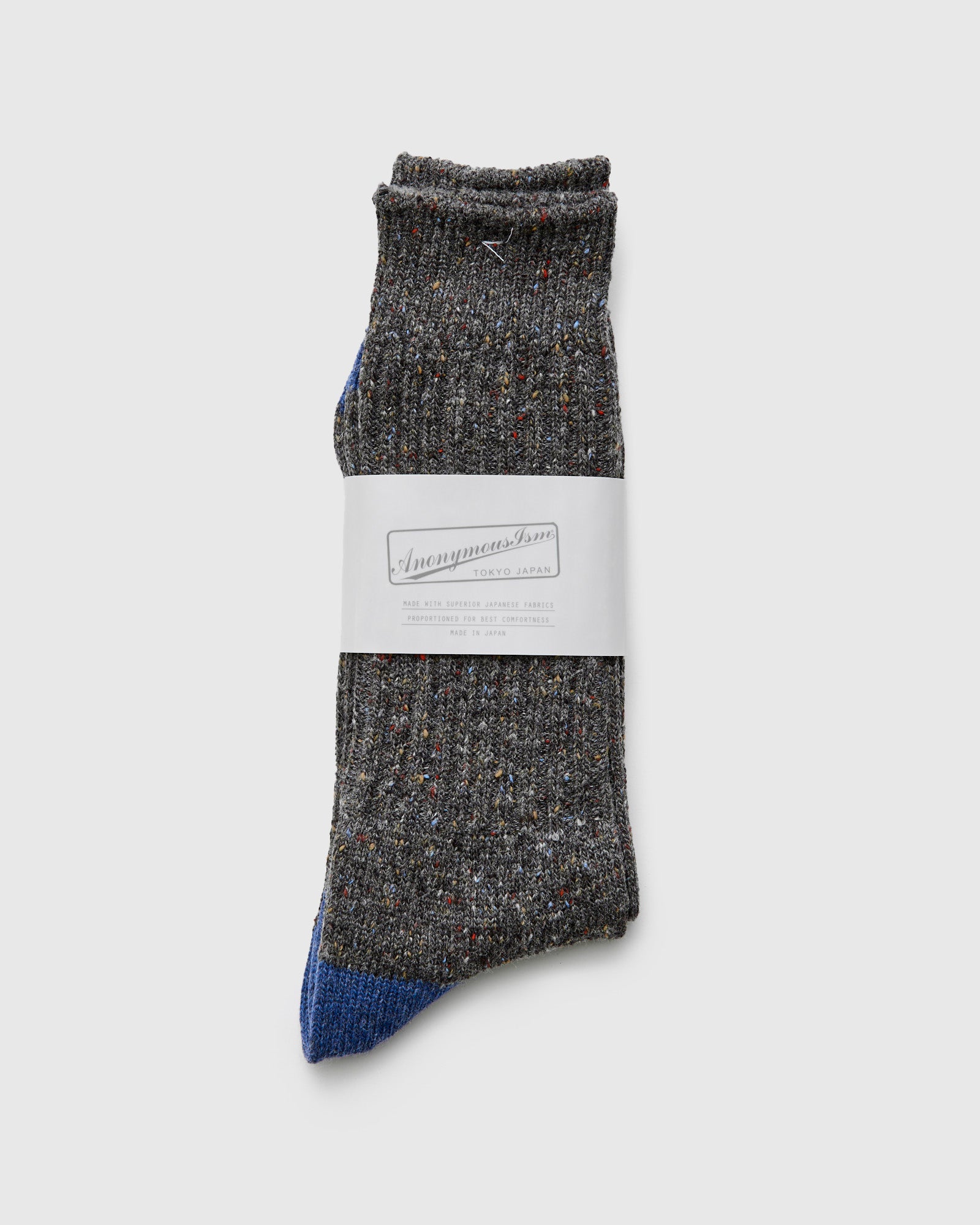 • The Tweed Nep crew socks from AnonymousIsm are warm full-length socks made from a heavily-textured wool blend fabric. The socks feature a two-tone color design with contrasting neps throughout. Each pair of AnonymousIsm socks are expertly crafted by their team in Tokyo, Japan.
