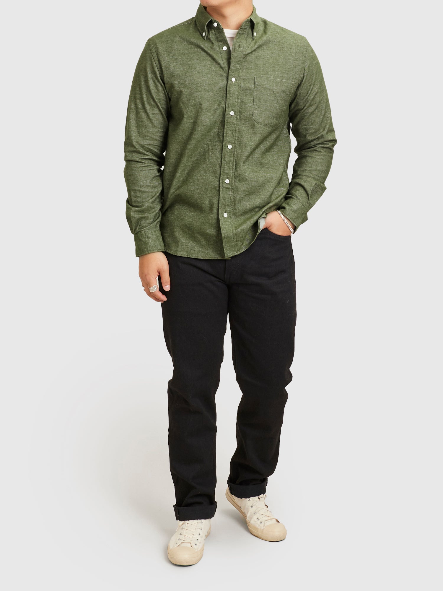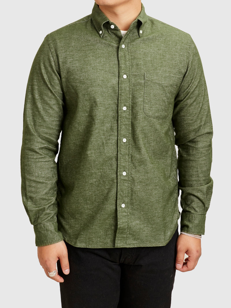 Twill Flannel Button-Down Shirt in Olive