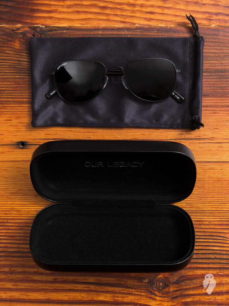 • The "Unbroken" sunglasses from Our Legacy come as part of the brand's signature eyewear collection. Inspired by the classic aviator style, these Italian-made sunglasses come fitted with smoke black lenses courtesy of the Carl Zeiss Vision. The frames are built using brushed metal wire with anti-scratch matte black acetate. Comes with an Our Legacy branded hard leather case and cleaning cloth.