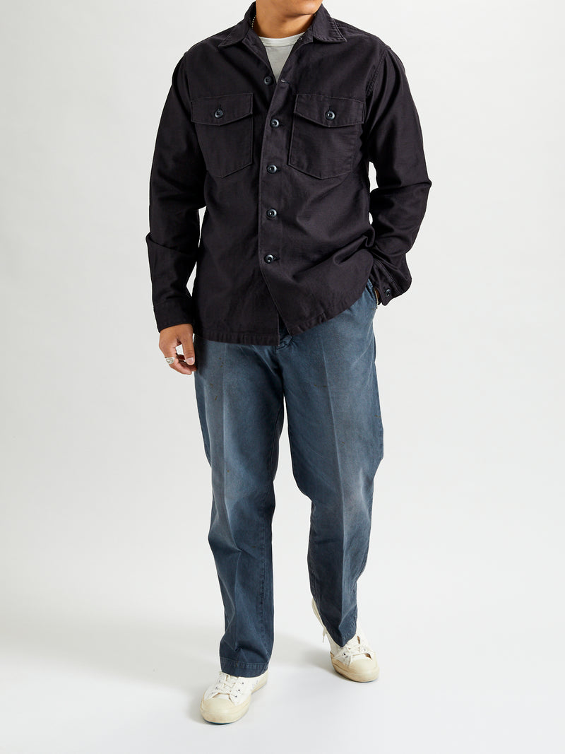 • The US Army Fatigue Shirt from orSlow is a reworked military staple. Built from orSlow's original reverse cotton sateen fabric, the overshirt style features standard issue design elements like two oversized front pockets with pen slots and bartack reinforcements. Cut with a straight hem.