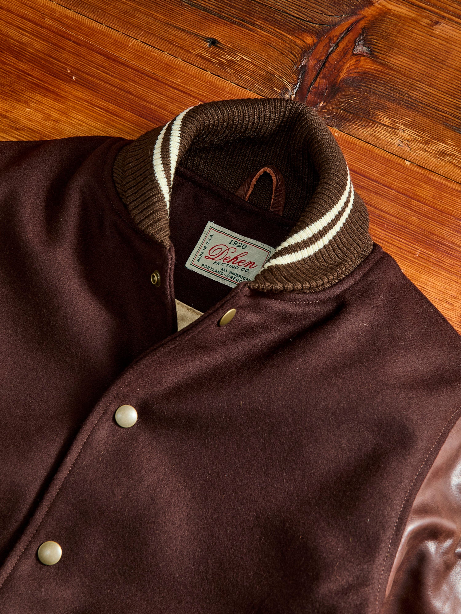 Founded by William Peter Dehen in 1920, the century old manufacturer produces traditional American styles using time-honored methods and classic patterns. With roots in supplying knitwear for colleges in the '20s, riding sweaters for Motorcycle clubs in the '30s, and varsity jackets for student athletes throughout the '50s; the brand continues their long-standing tradition of producing garments with a long-lasting quality and rugged style in their Portland, Oregon factory.
