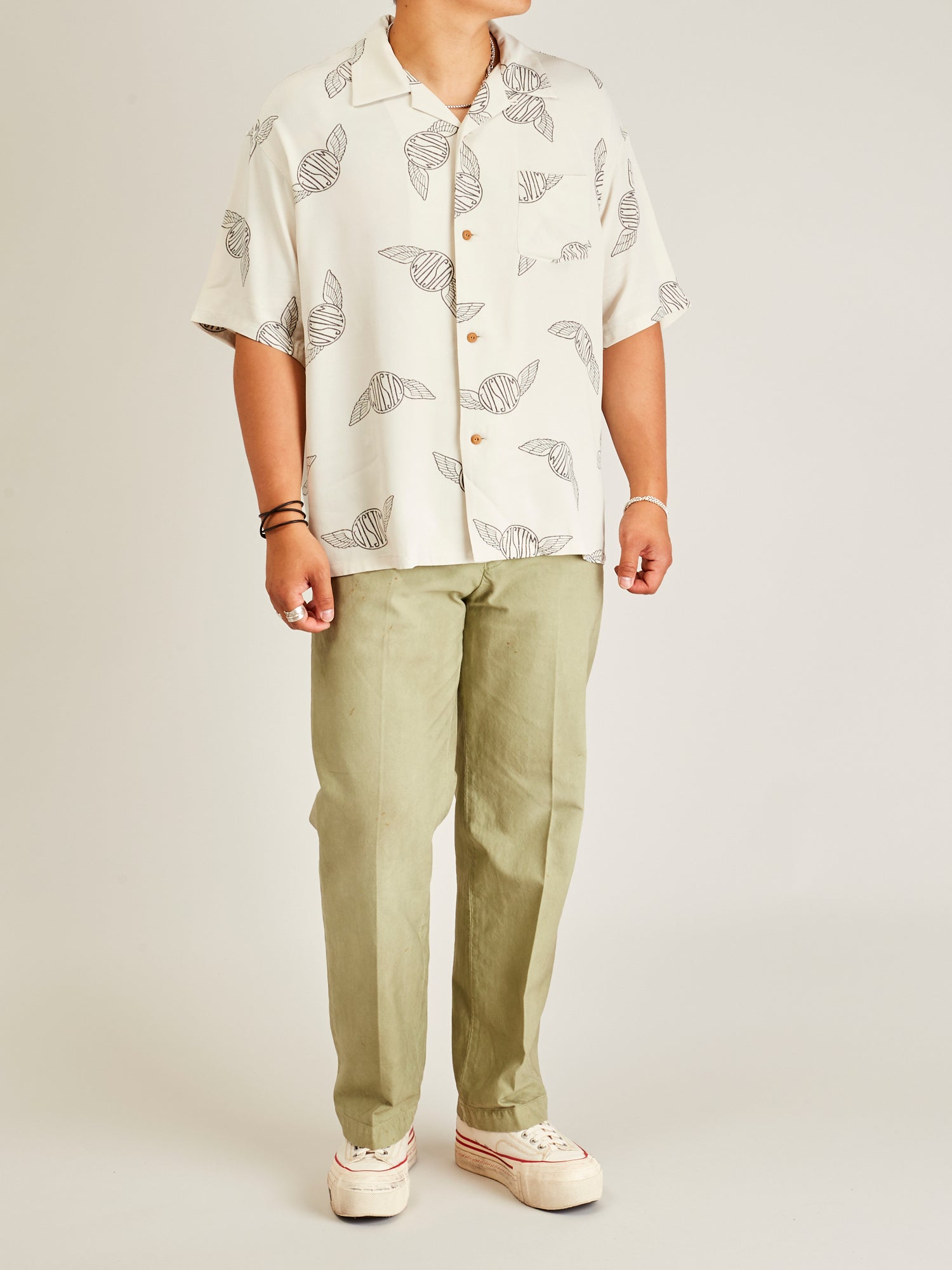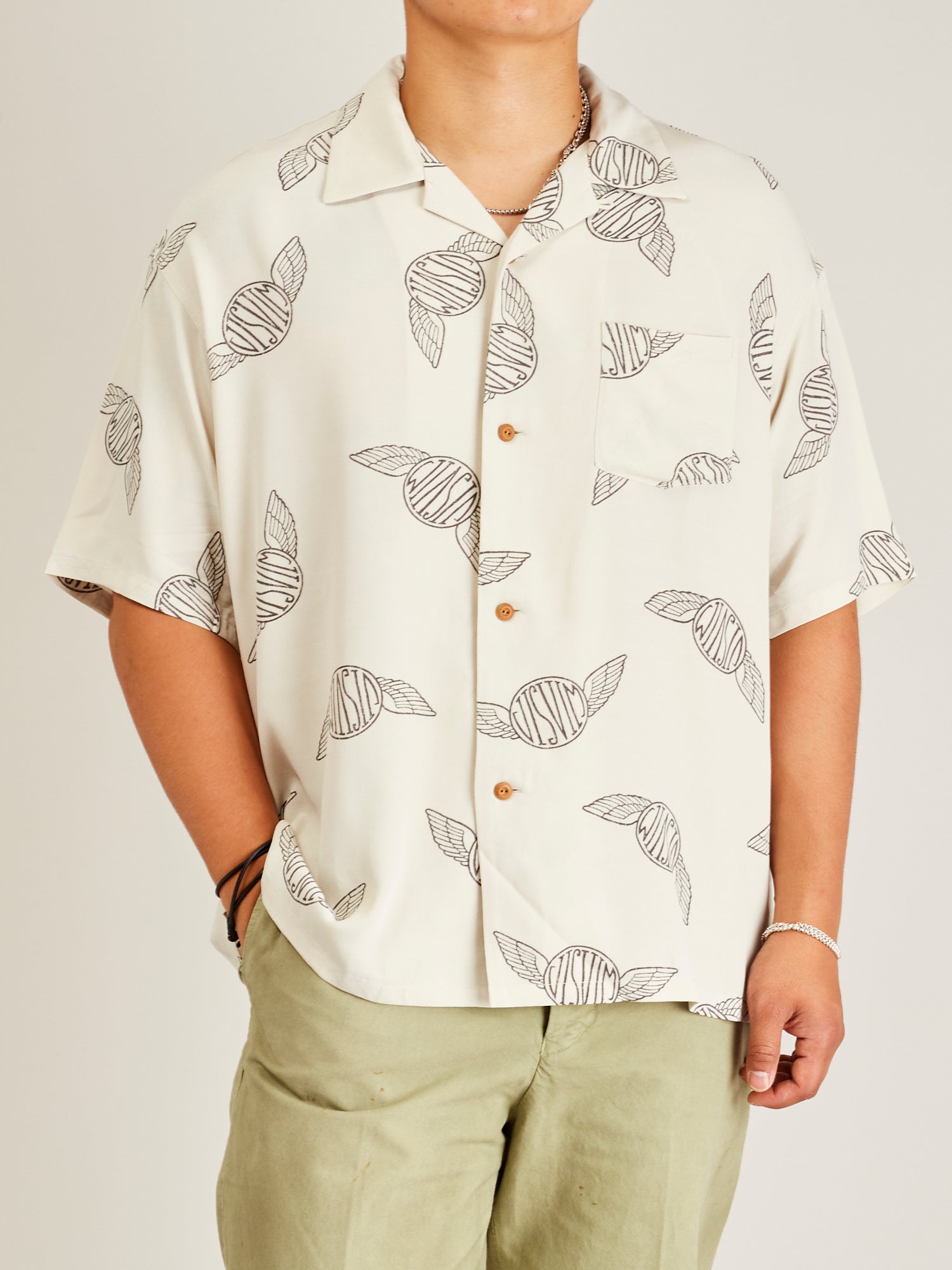 • Available for the first time outside of visvim flagship stores, Blue Owl is proud to introduce visvim's CONTRARY DEPT line. Derived from the question "What is practicality in today's world?", visvim's CONTRARY DEPT takes a look at the meaning behind utility and function. Crafted from a sleek rayon-satin fabric, the Wallis shirt from visvim is the brand's take on the open-collar Hawaiian shirt. Featuring an all over wings print, the shirt is cut in a boxy dropped-shoulder silhouette and comes detailed with water bamboo buttons.