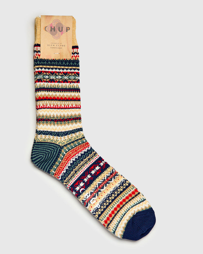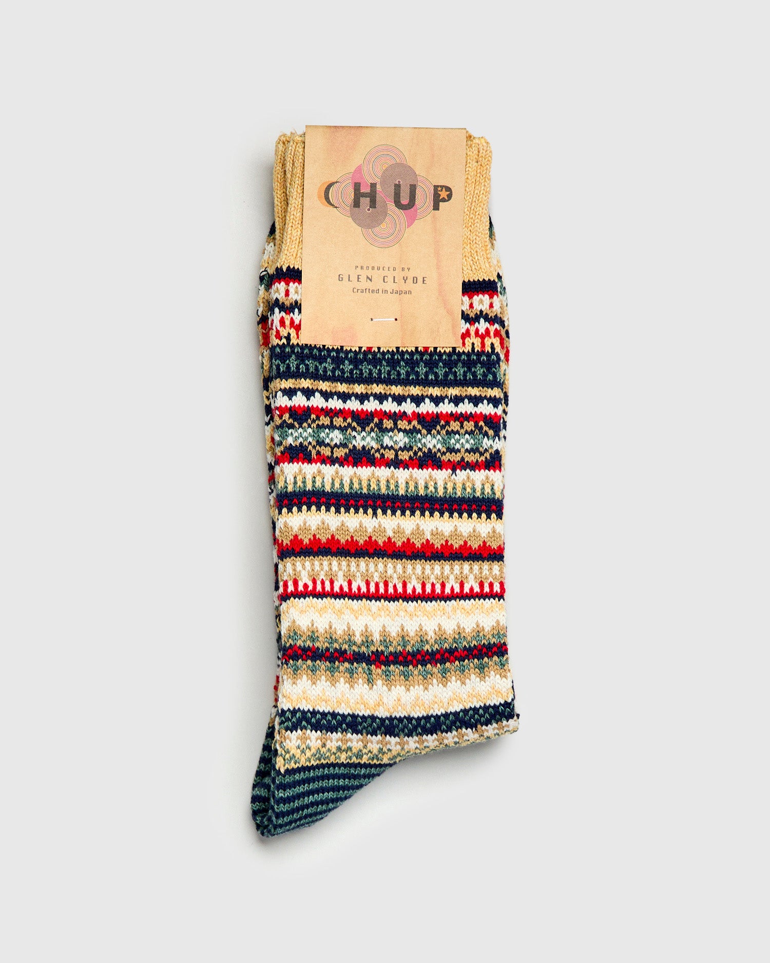• Crafted by the textile house Glen-Clyde Inc., CHUP socks have become a workwear icon since their debut in 2009. Famous for their incredible durability and colorful patterns, each sock is expertly handmade in Japan and designed with the utmost attention to detail.