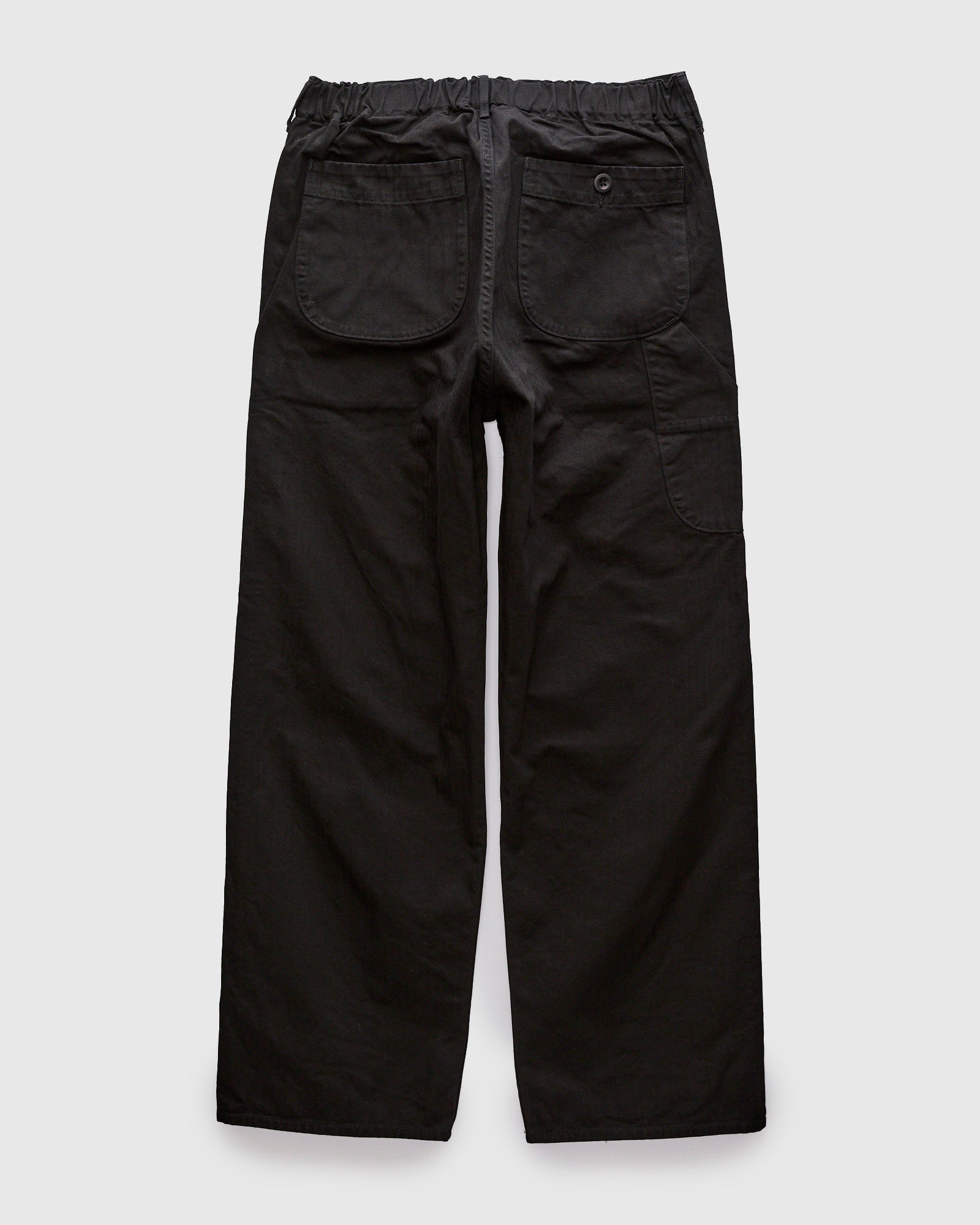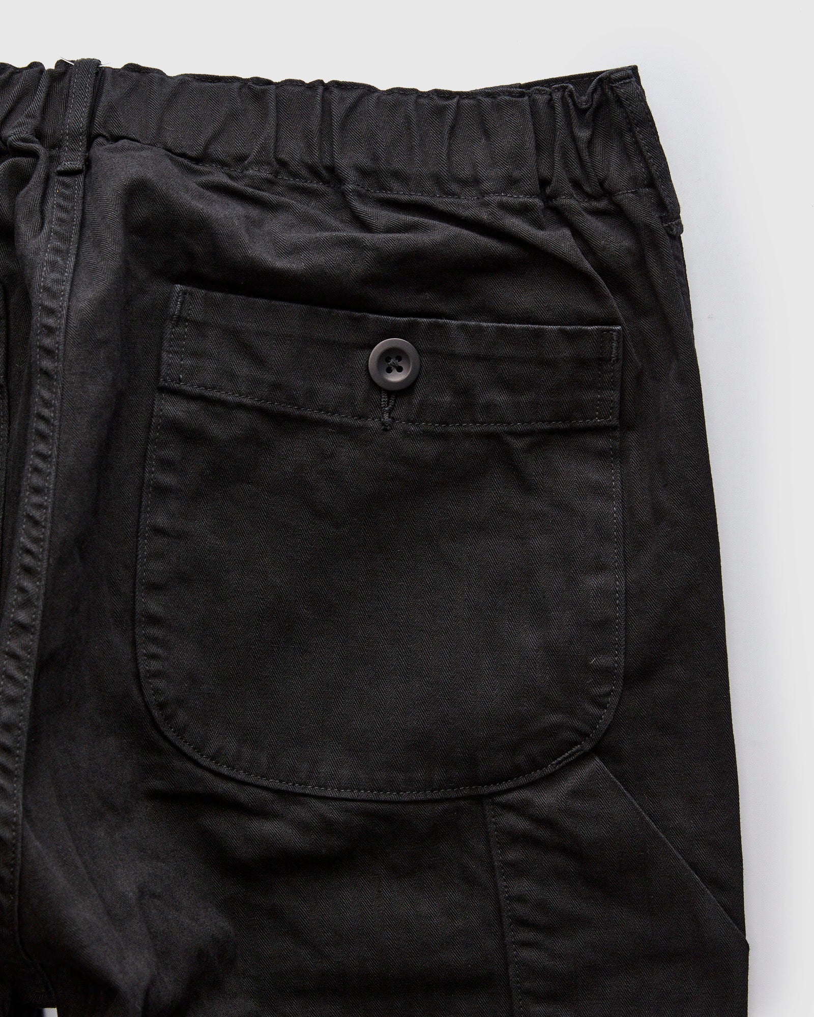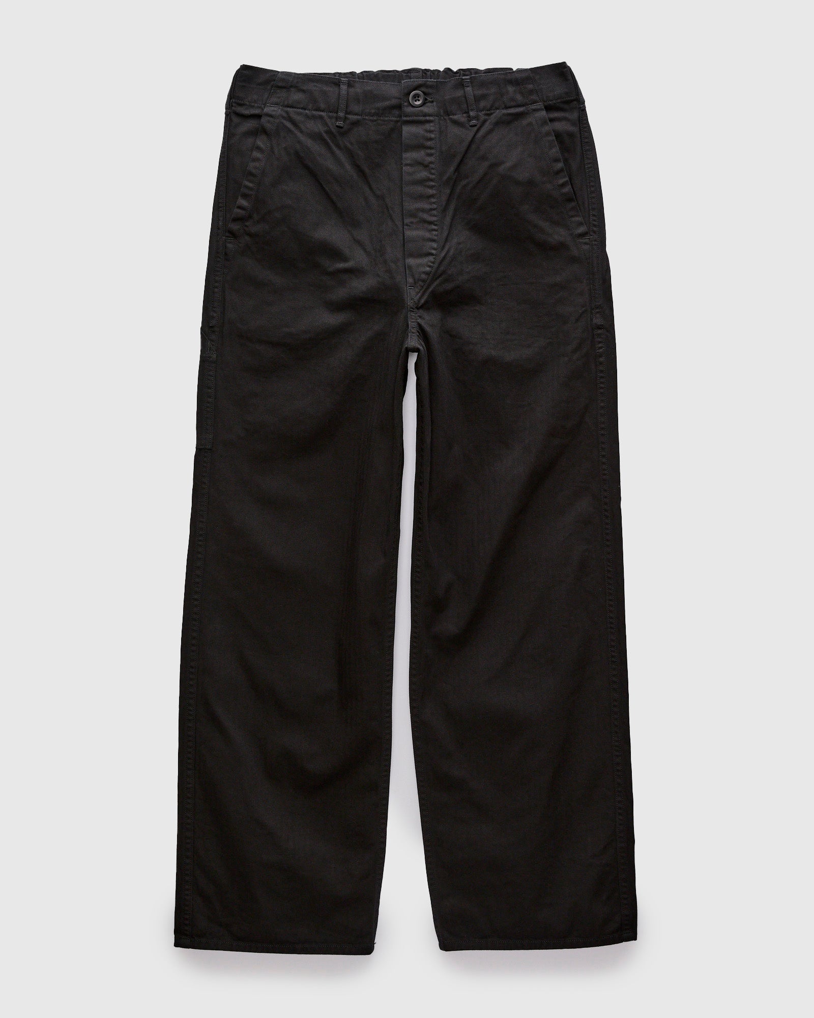 • The French Work Pants from orSlow are a classic wide-leg trouser accompanied by an assortment of utility pockets. This installment utilizes a mid-weight cotton herringbone with a dry hand and sturdy feel. Finished with an elastic back waistband, button fly, and bartack reinforcement at points of stress.