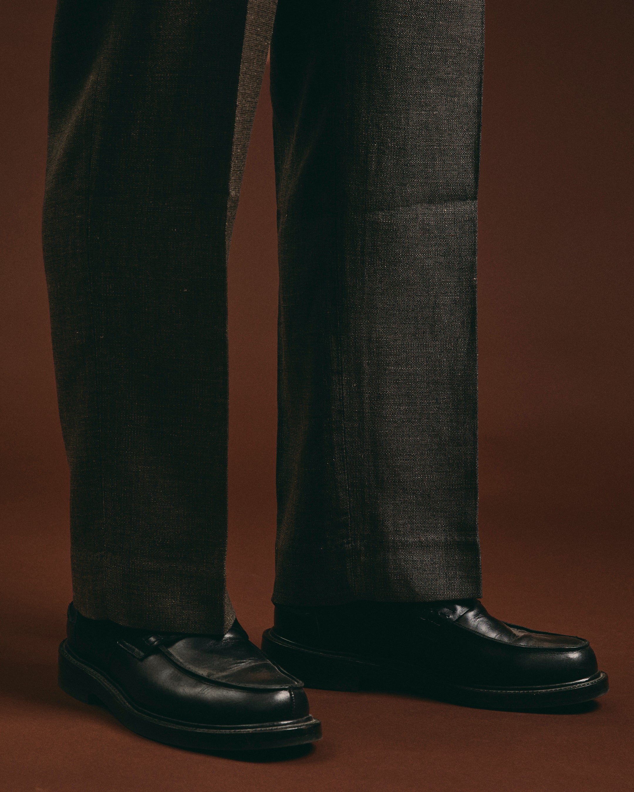 • Reimagining mid-century suiting, these trousers from visvim are crafted using a custom wool-linen blend fabric. The pants feature a sleek surface texture and crisp hand. Cut in a tailored-straight leg fit, the pants are fitted with water buffalo buttons, a smooth waistband liner, and pockets at the waist and rear.
