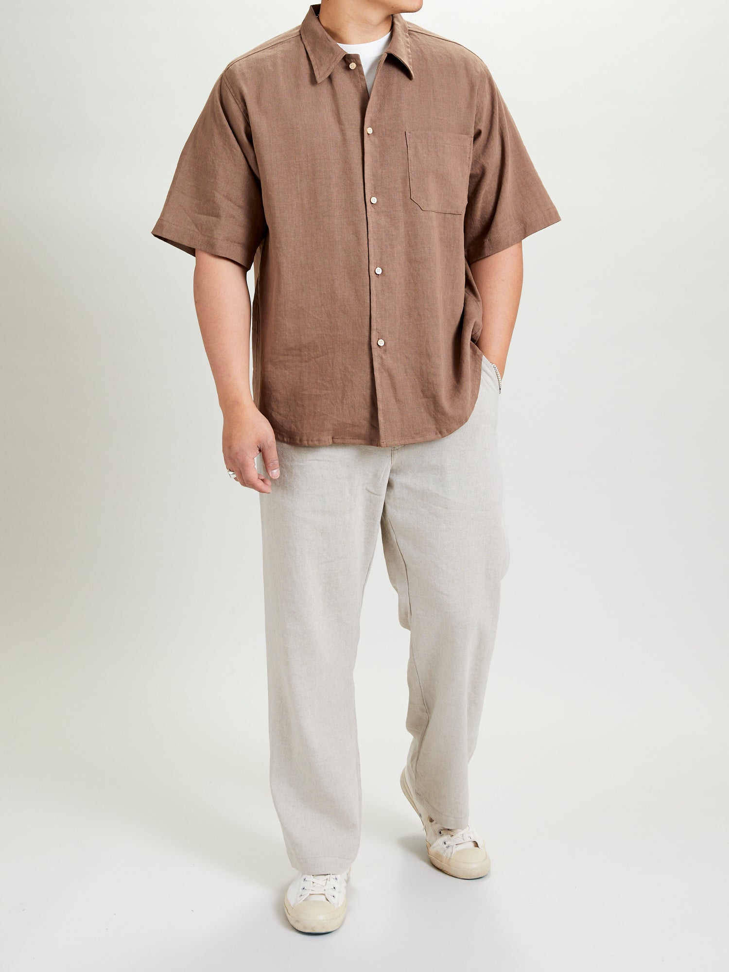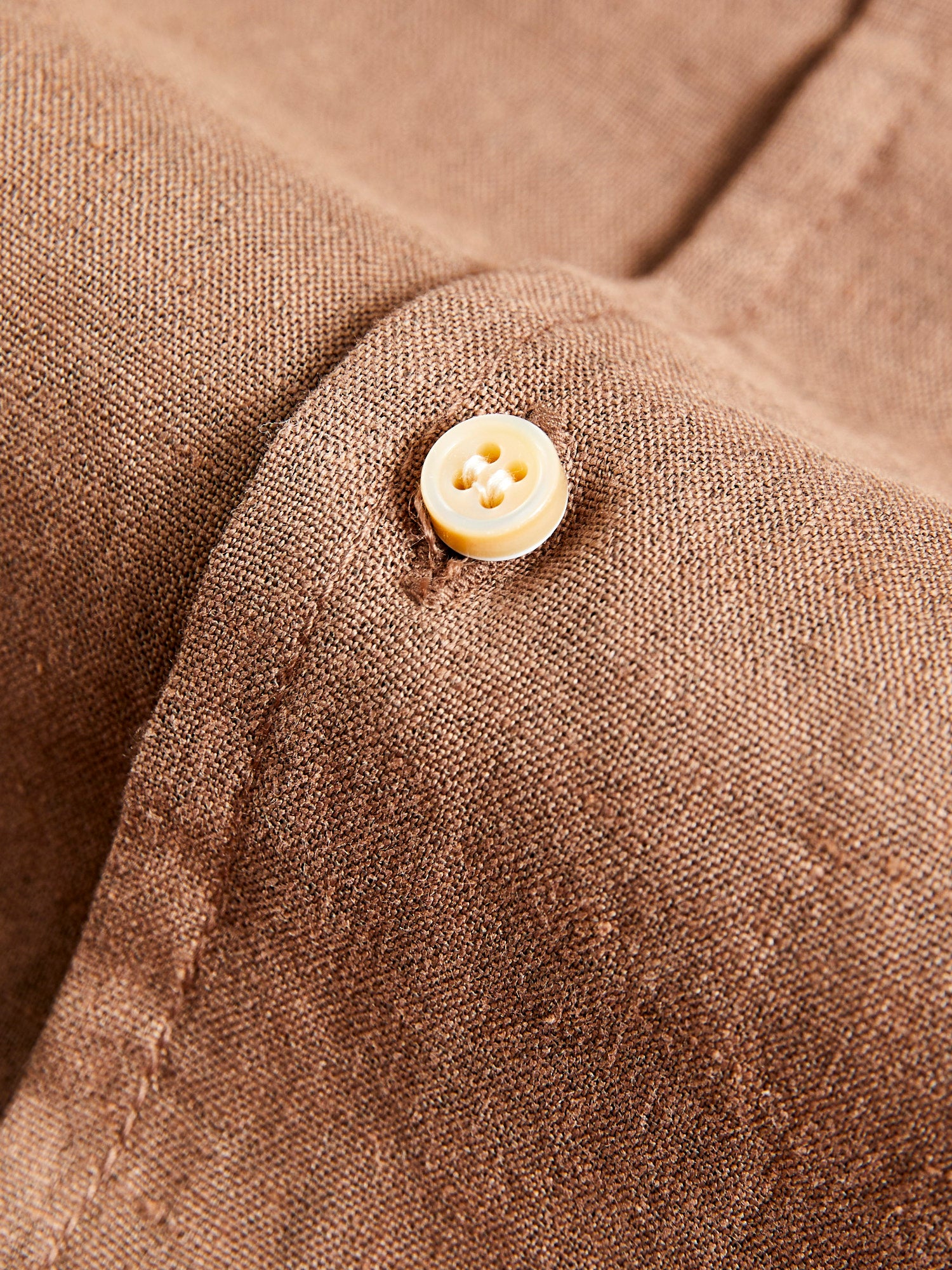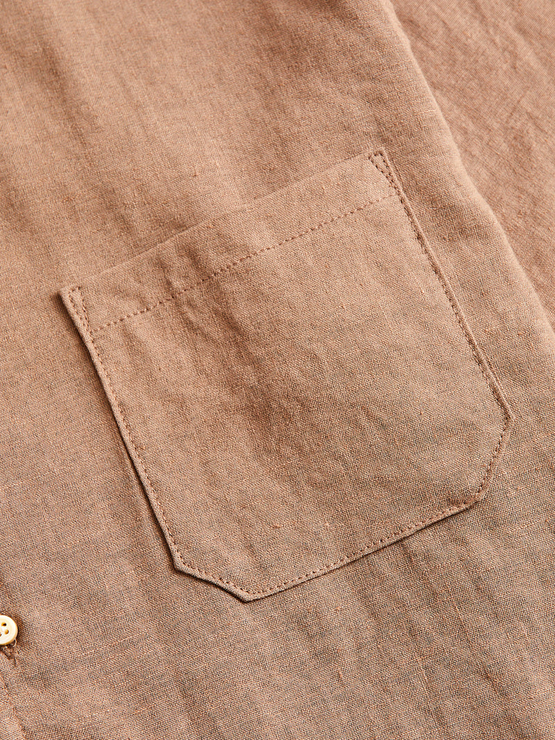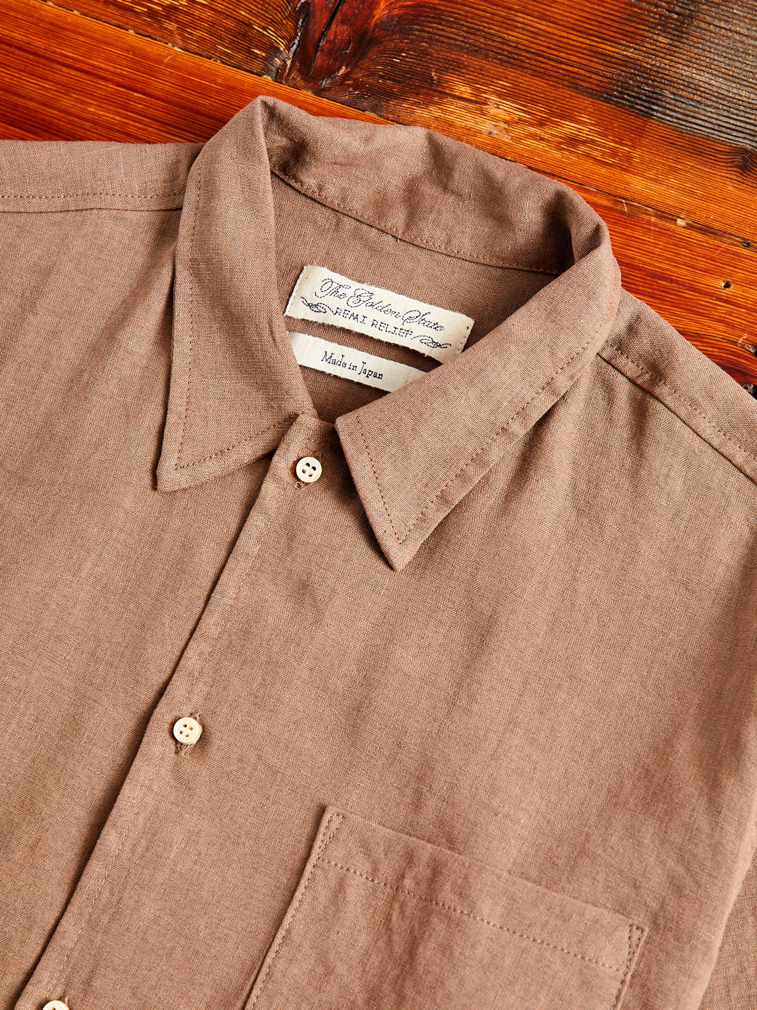 • This shirt from Remi Relief is crafted using the brand's "Wonder Linen" fabric: a lightweight and breathable material custom-woven using a linen-poly blend for a soft and airy feel. Inspired by coastal California, Remi engineers the classic short-sleeve open collar shirt with relaxed tailoring in the spirt of the 1990s. Fitted with cats-eye buttons, a pointed collar, and single chest pocket at the front.